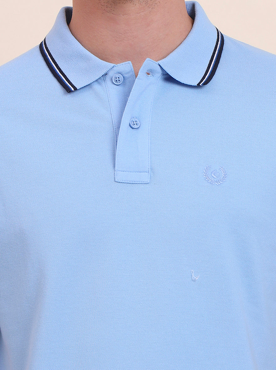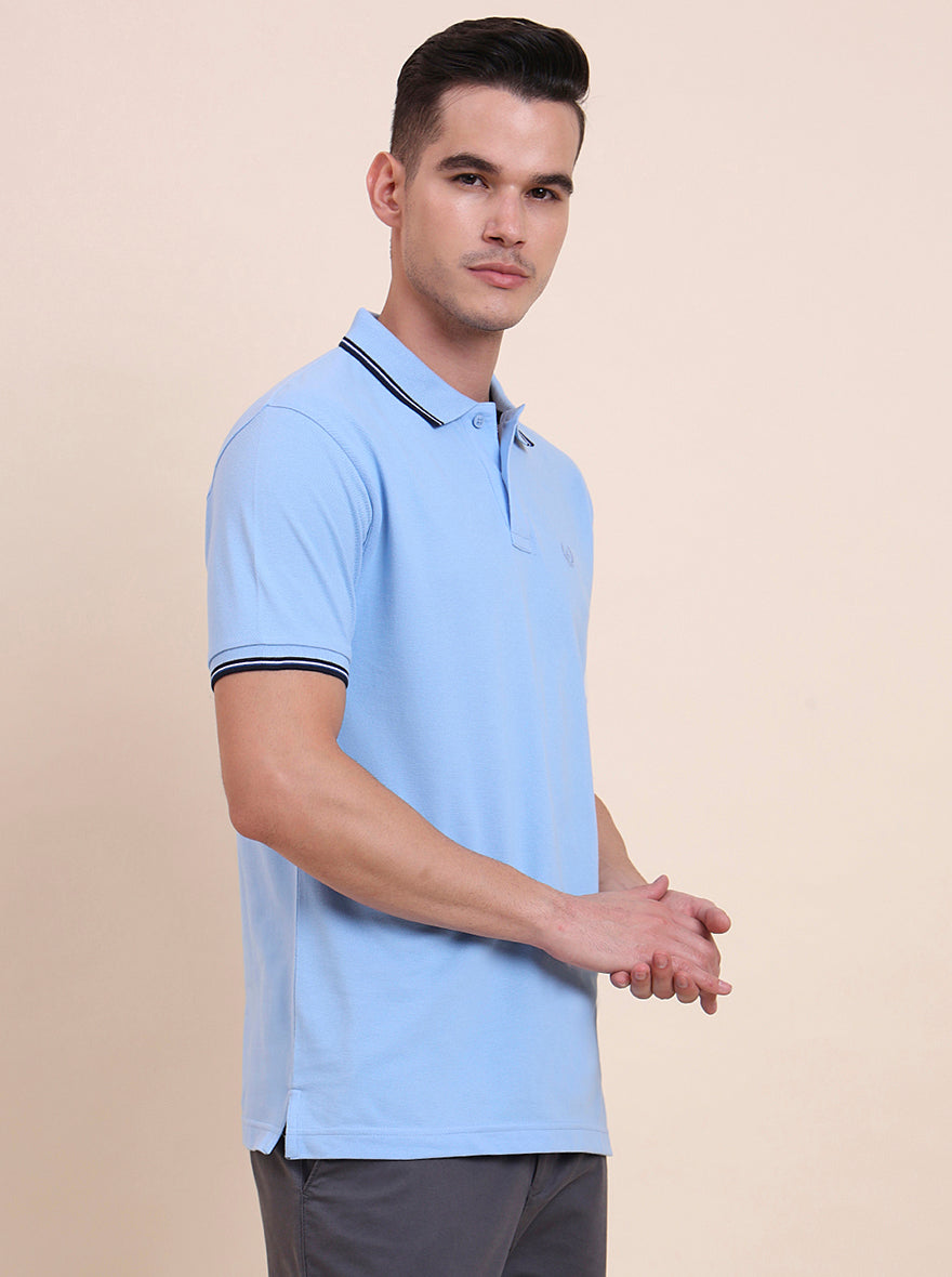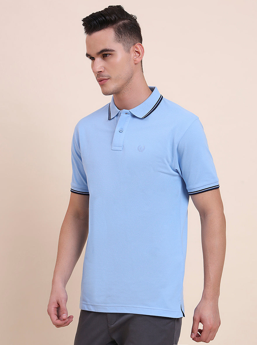 Sky Blue Solid Slim Fit Polo T-Shirt | Greenfibre