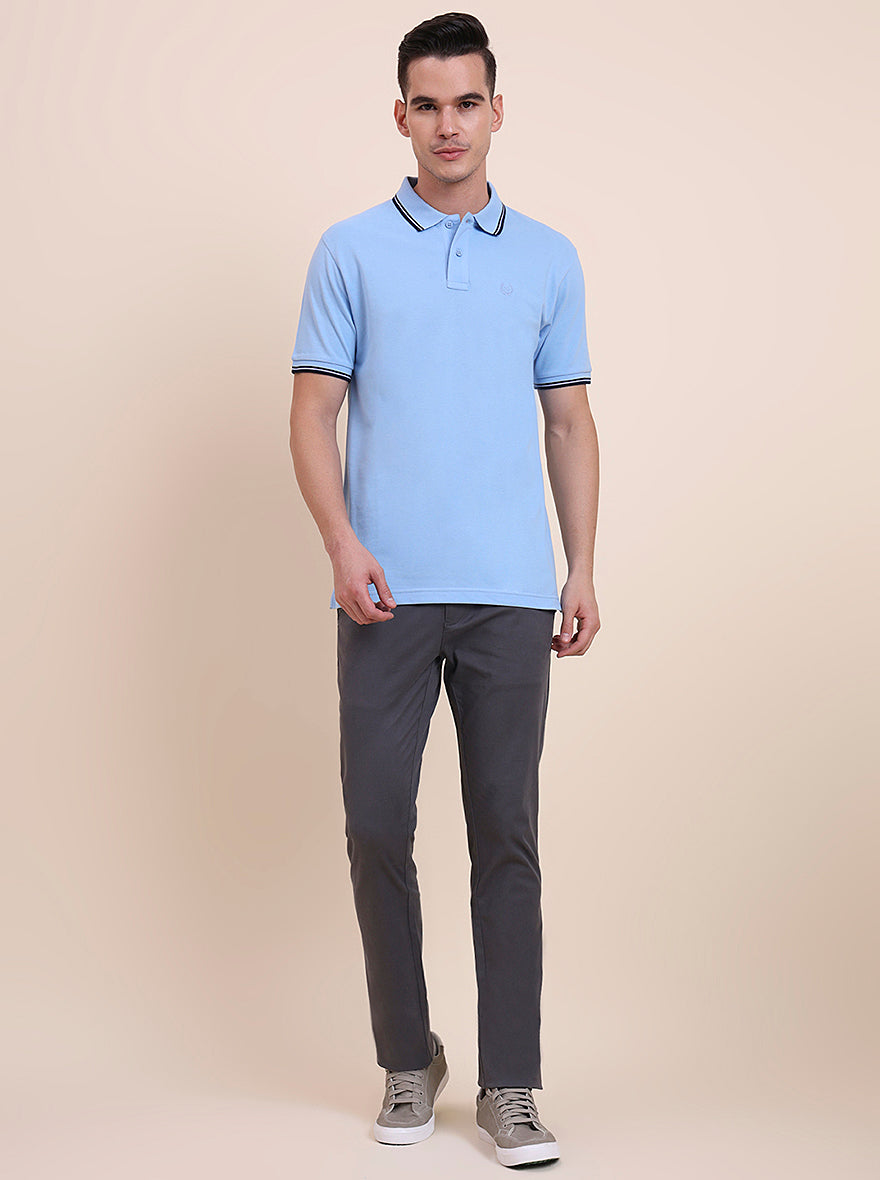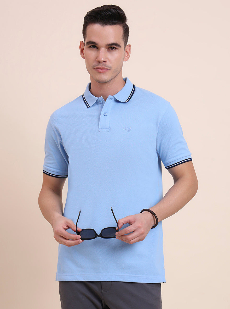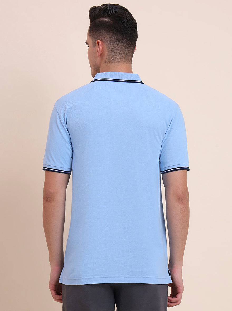 Sky Blue Solid Slim Fit Polo T-Shirt | Greenfibre