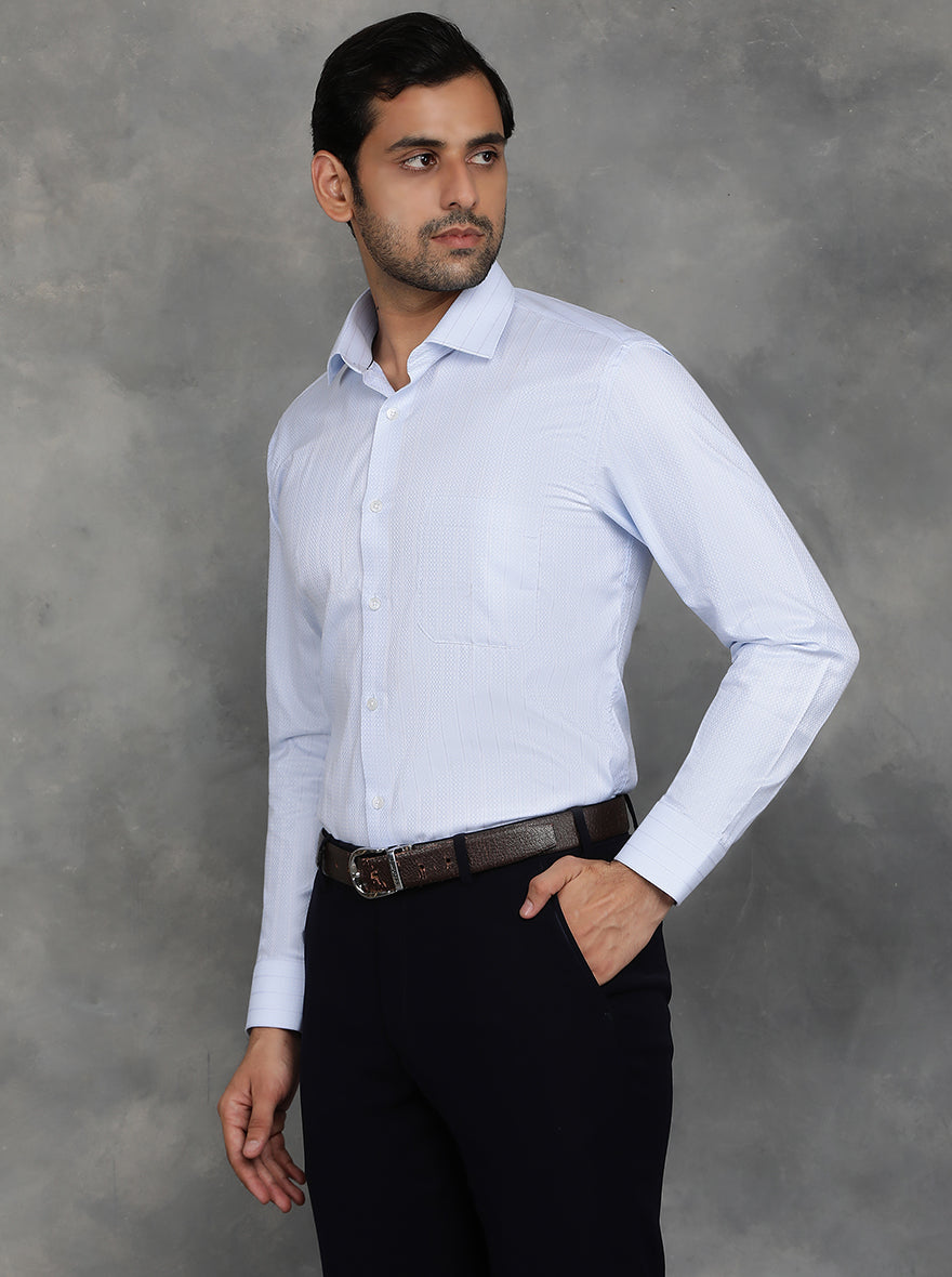 Sky Blue Striped Slim Fit Formal Shirt | GreenFibre