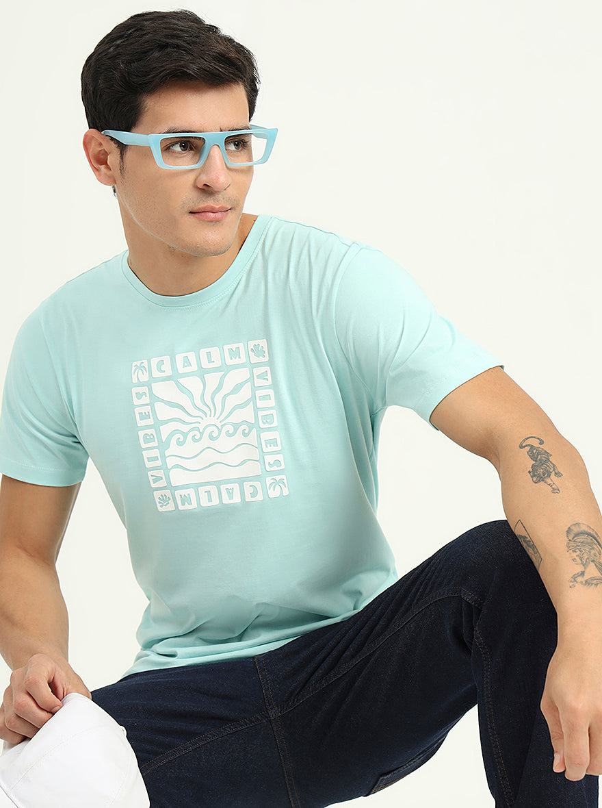 Tint Blue Printed Slim Fit T-Shirt | Greenfibre