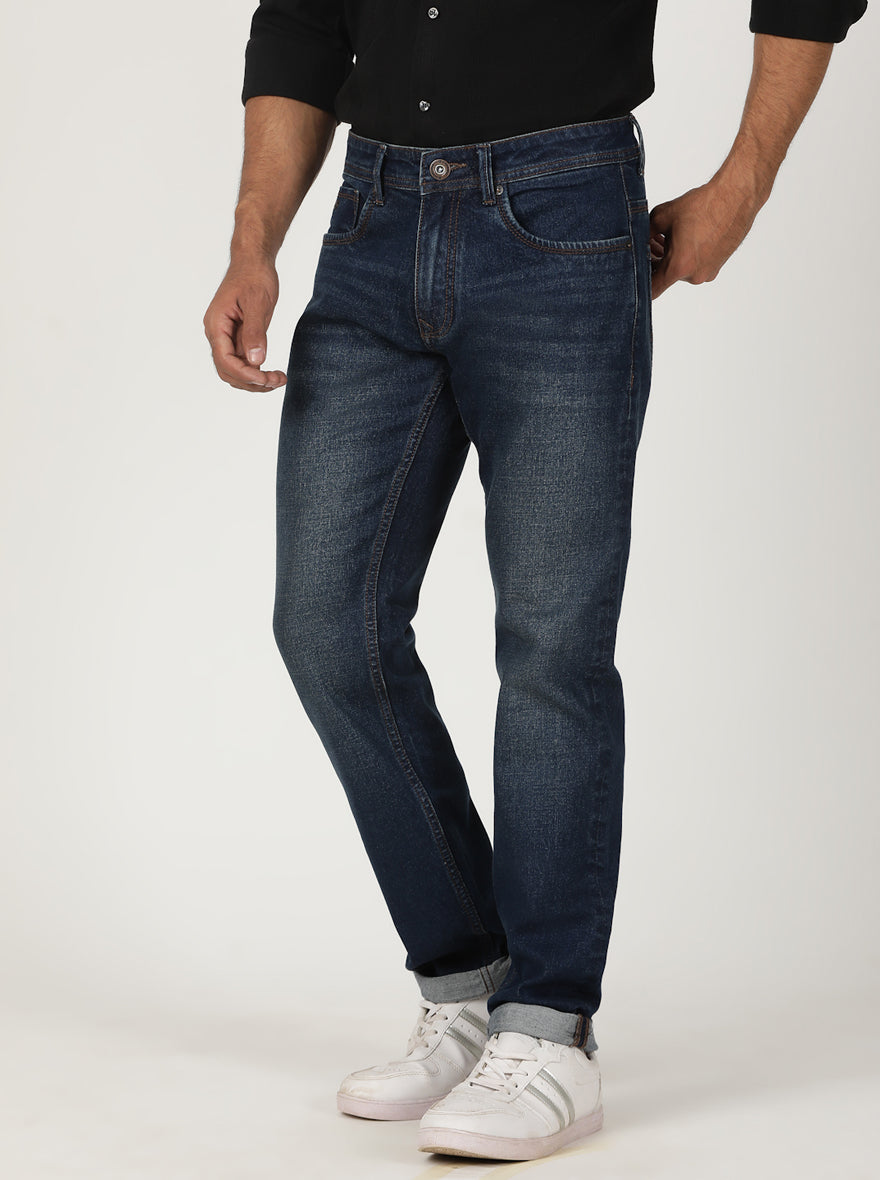 Tinted Dark Blue Washed Slim Fit Jeans | Greenfibre