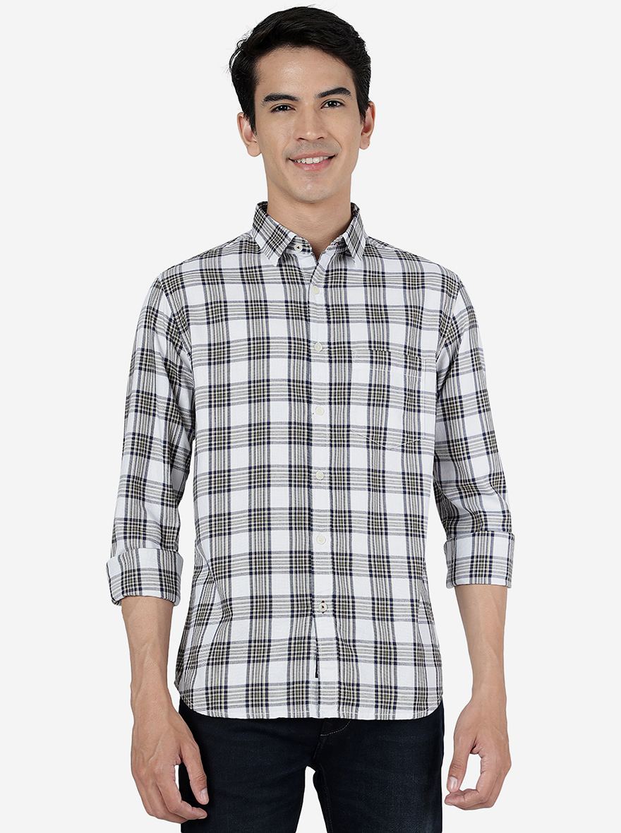Vineyard Green Checked Slim Fit Casual Shirt | Greenfibre