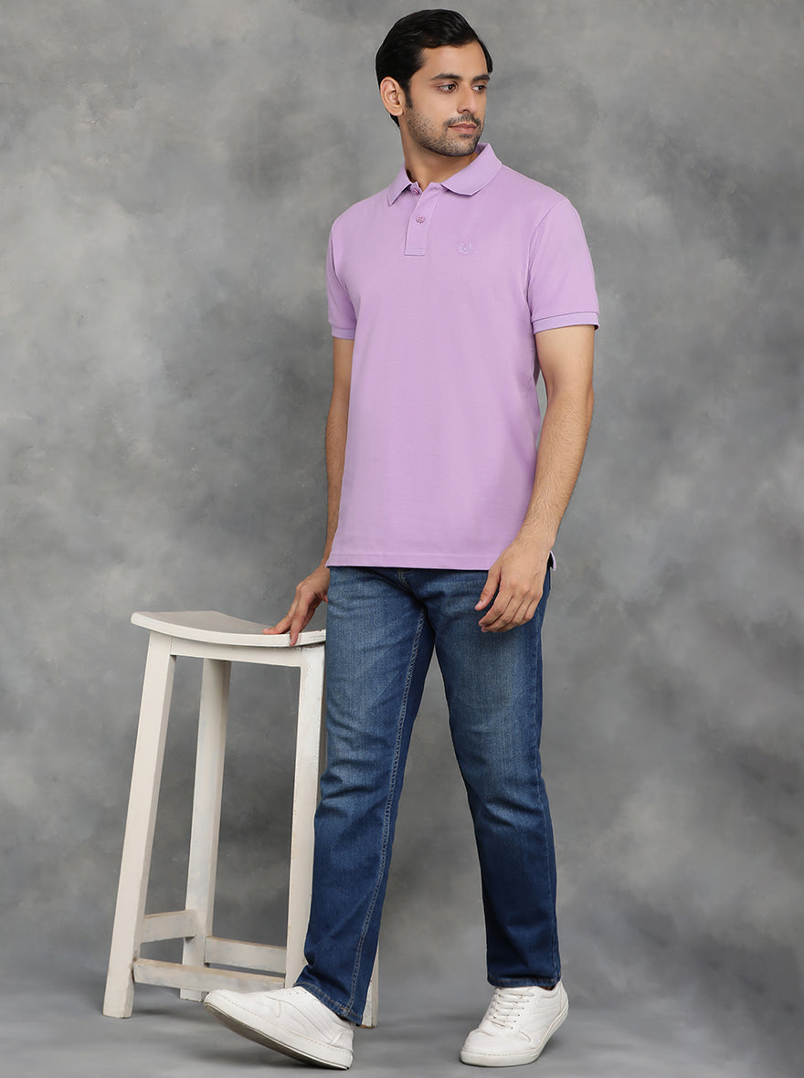 Violet Solid Slim Fit Polo T-Shirt | GreenFibre