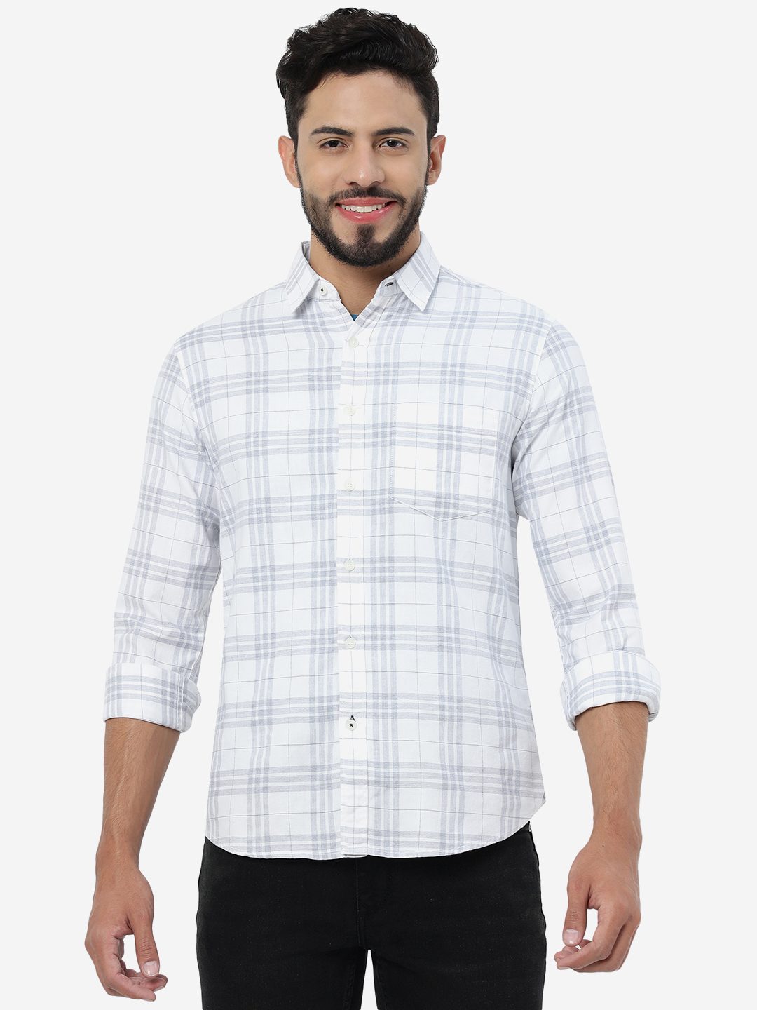 White Checked Slim Fit Casual Shirt | Greenfibre