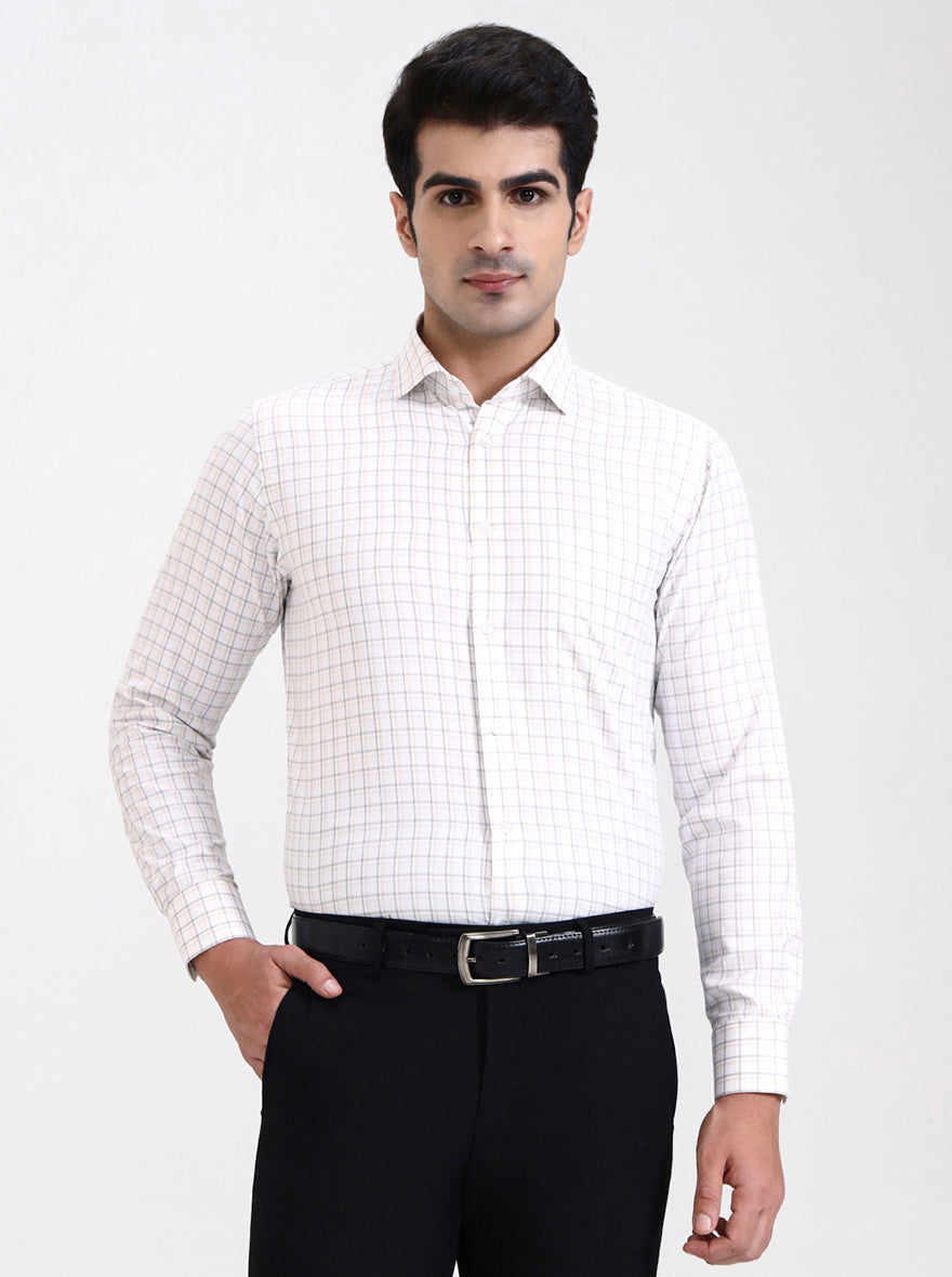 White Checked Slim Fit Formal Shirt | Greenfibre