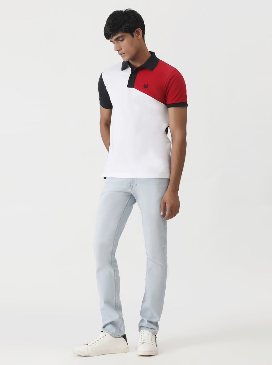 White Cut & Sew Slim Fit Polo T-Shirt | Greenfibre