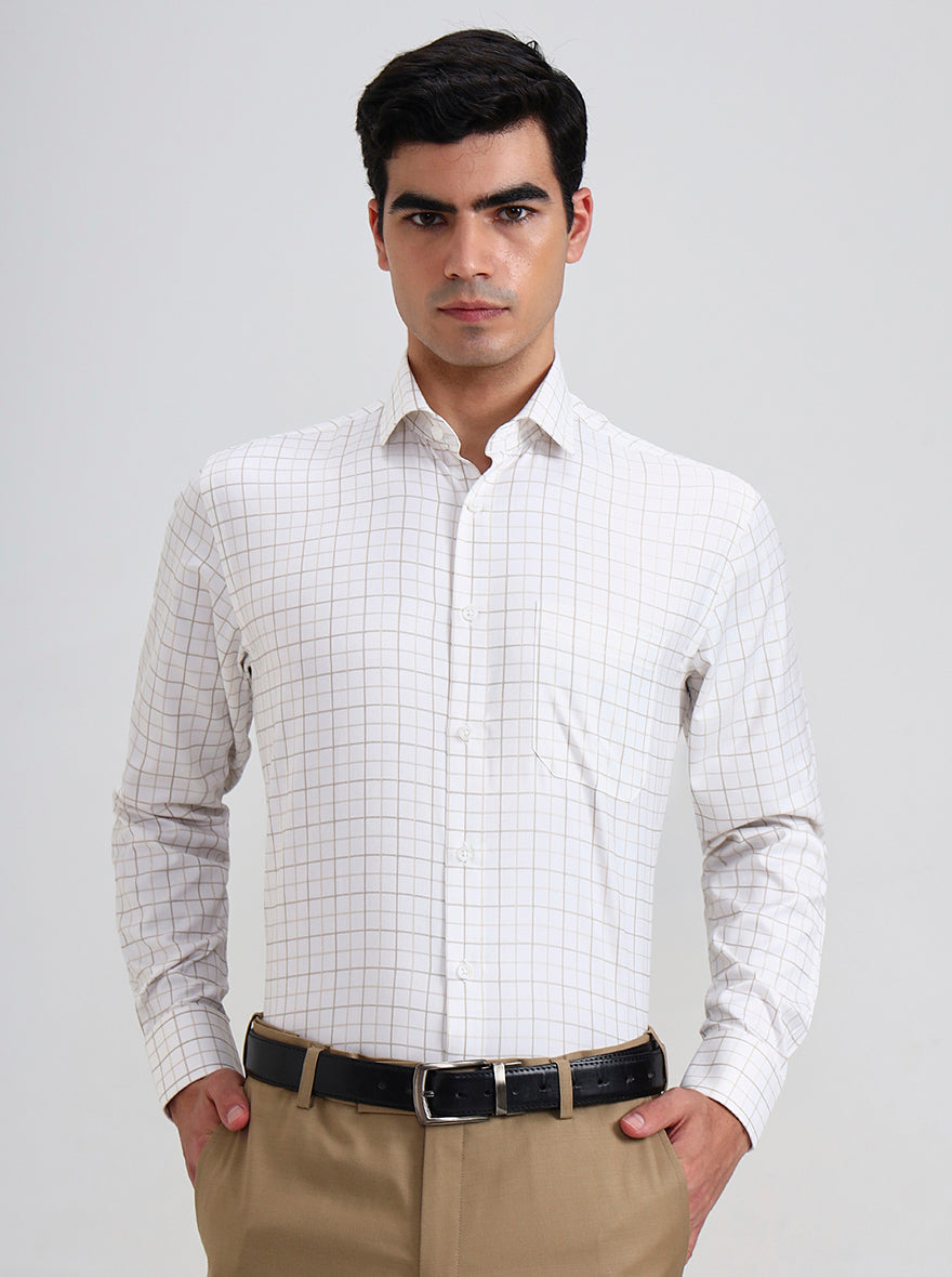 White & Fawn Checked Regular Fit Formal Shirt | Greenfibre