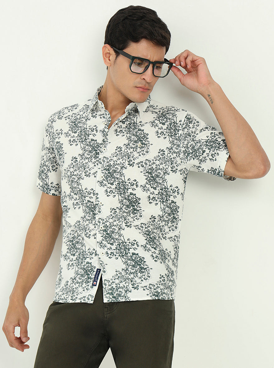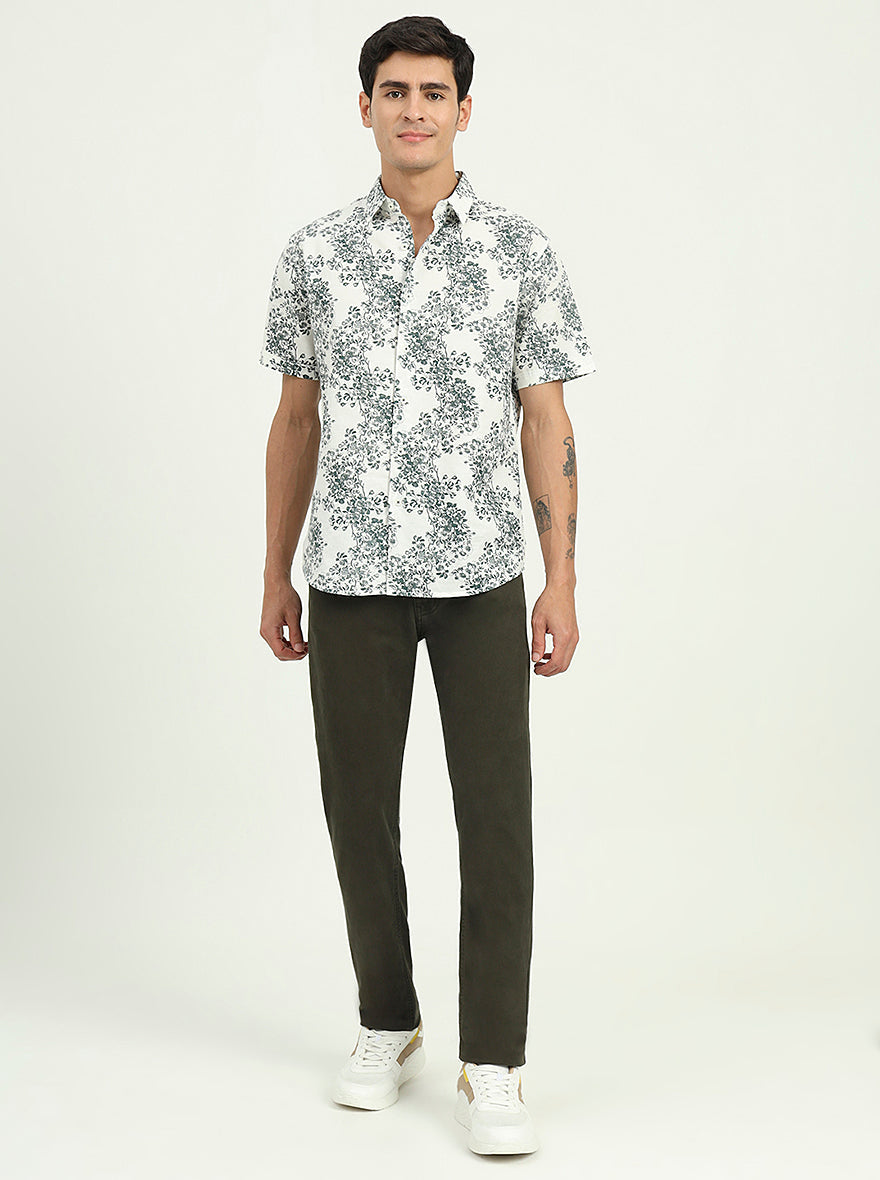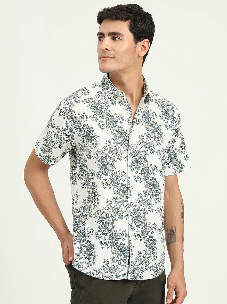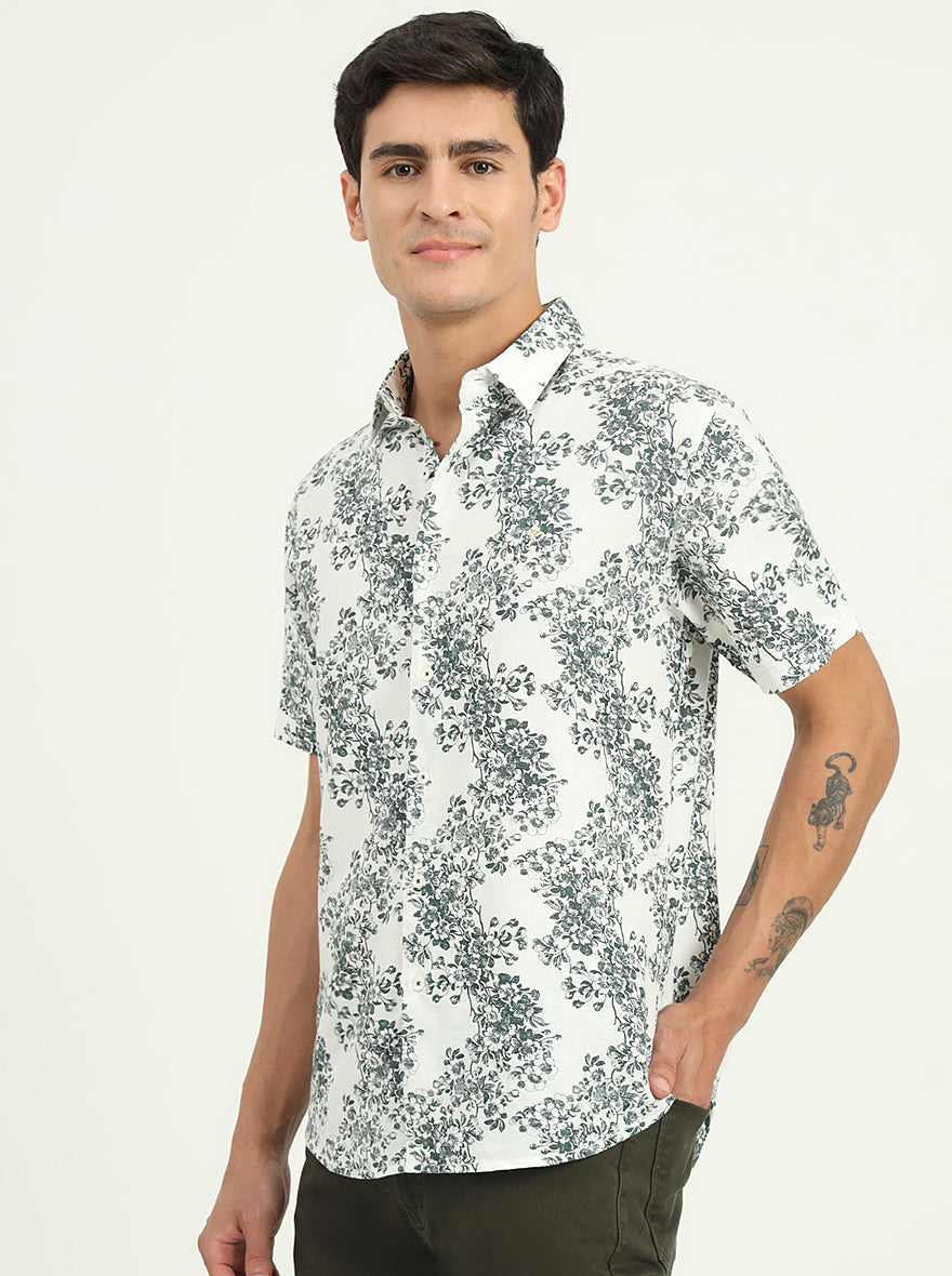 White & Green Printed Slim Fit Casual Shirt | Greenfibre