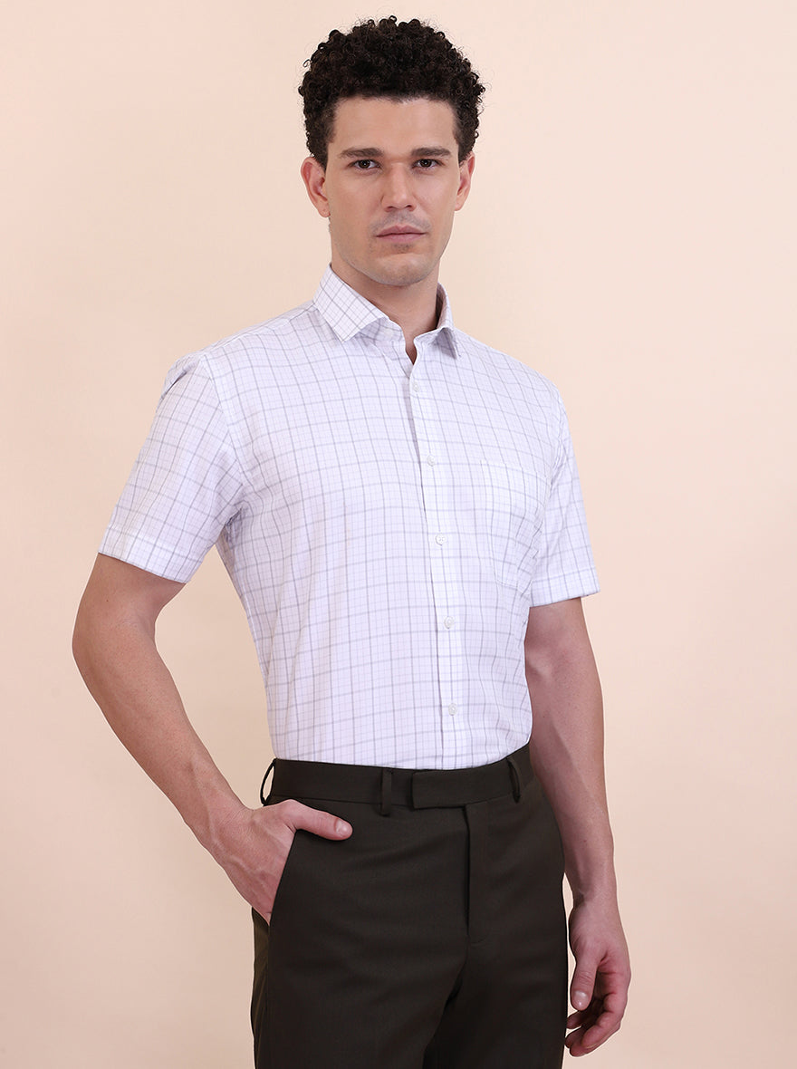White & Grey Checked Regular Fit Formal Shirt | Greenfibre