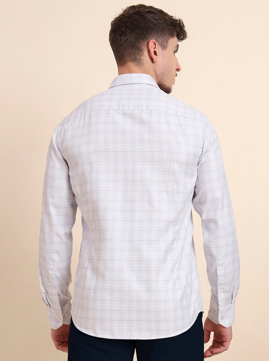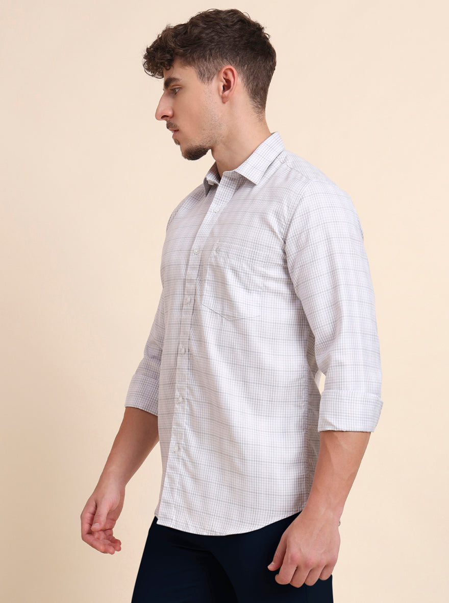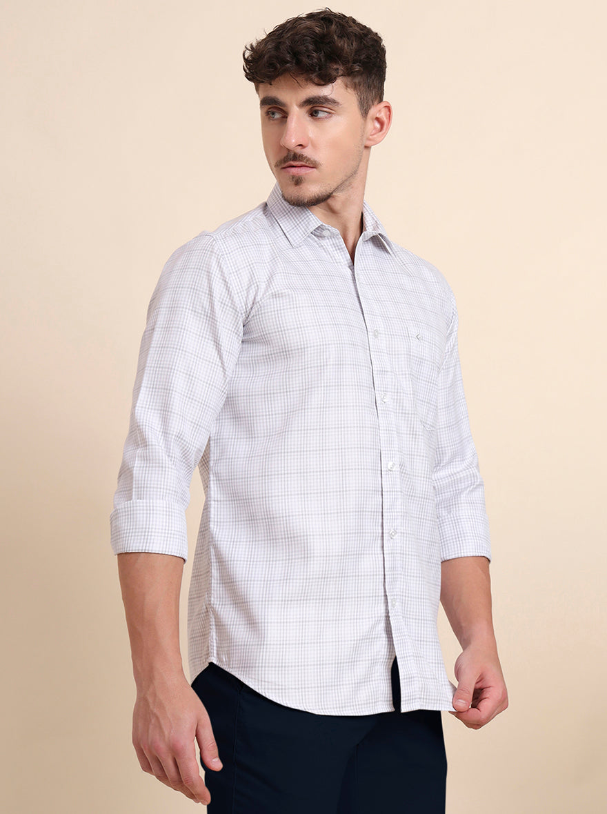 White & Grey Checked Smart Fit Semi Casual Shirt | Greenfibre