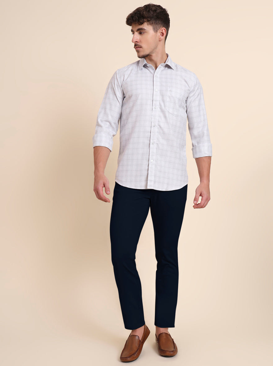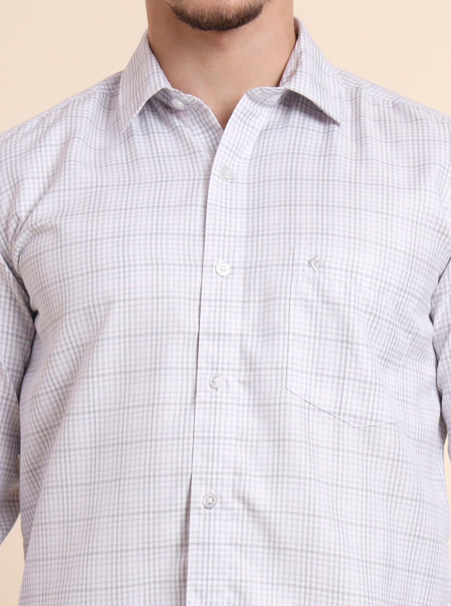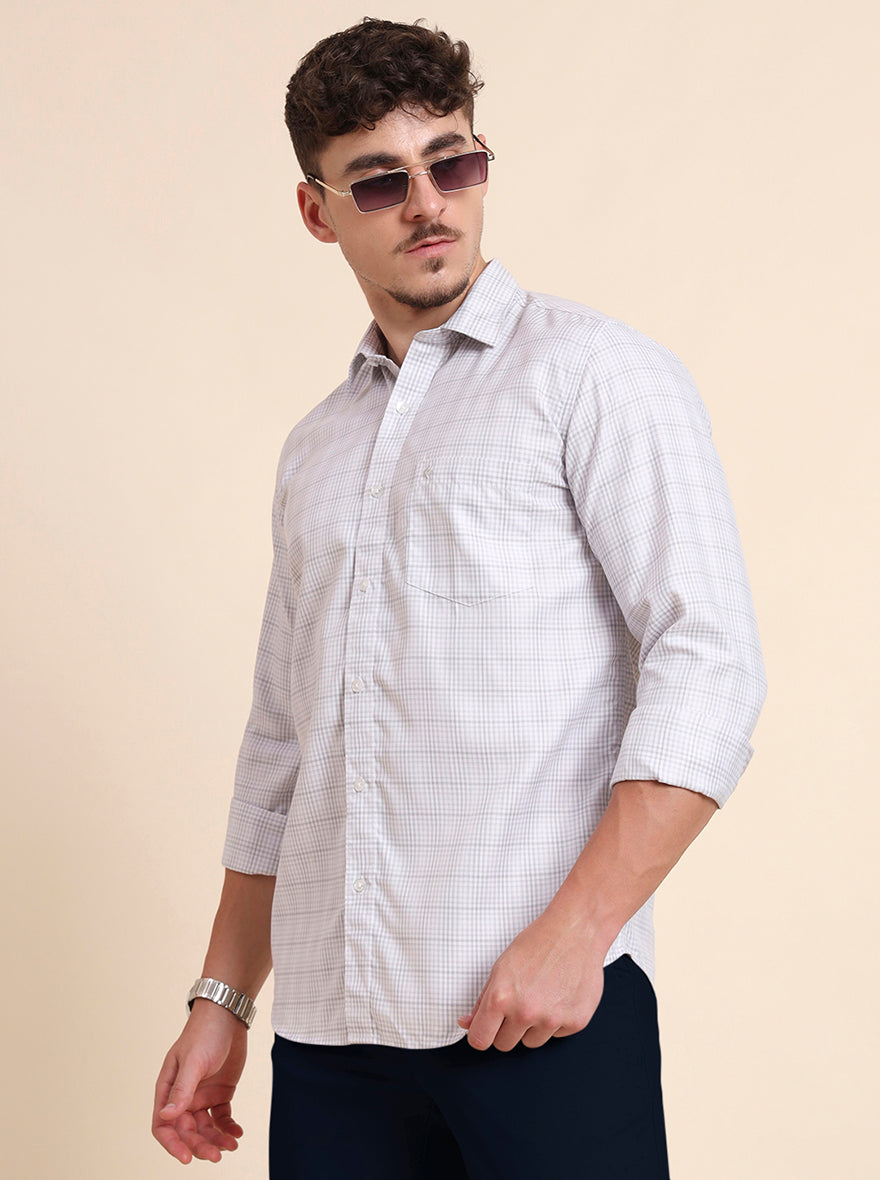White & Grey Checked Smart Fit Semi Casual Shirt | Greenfibre