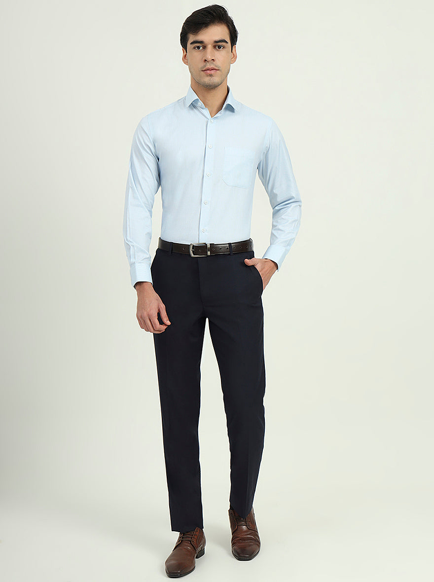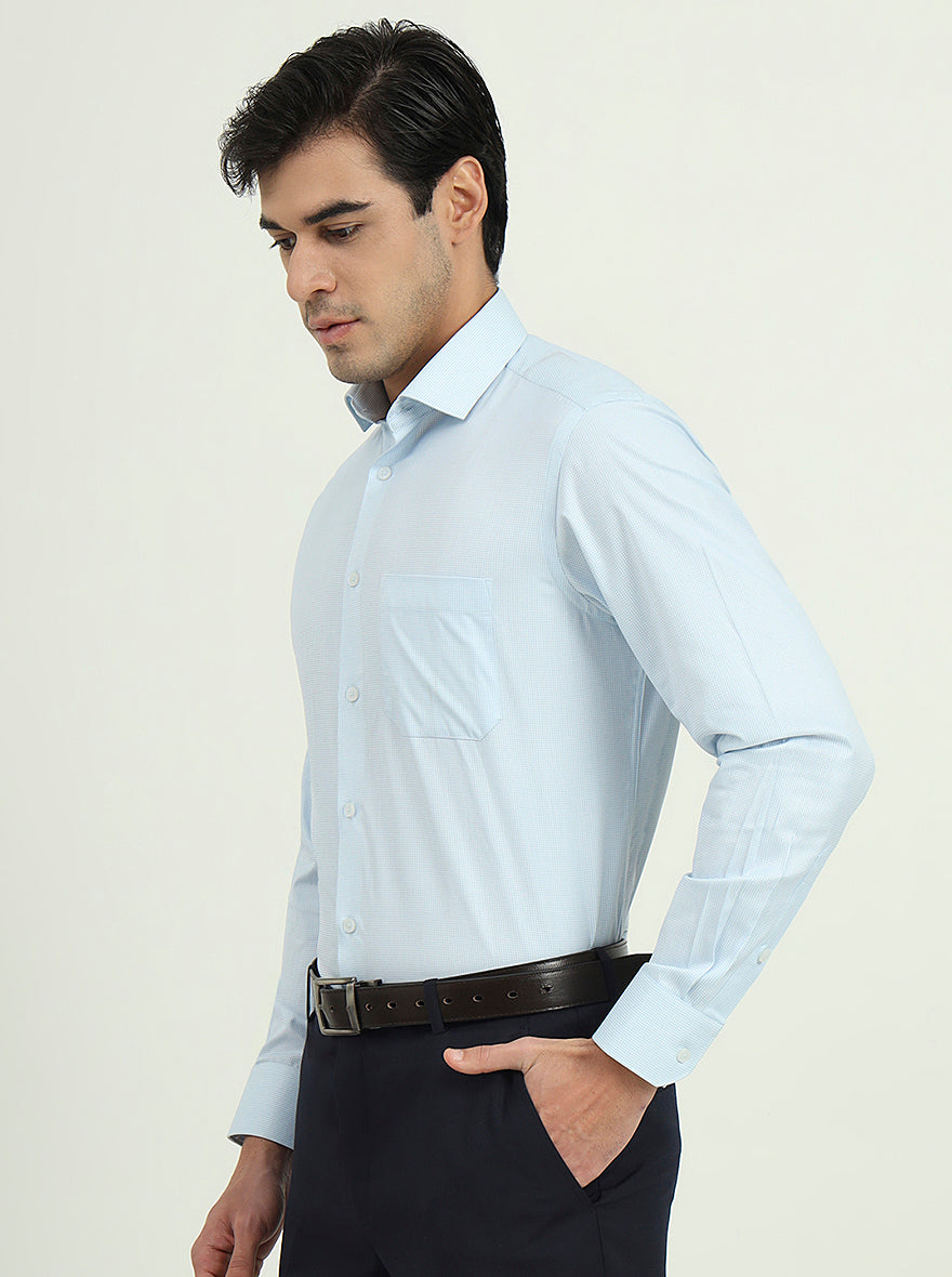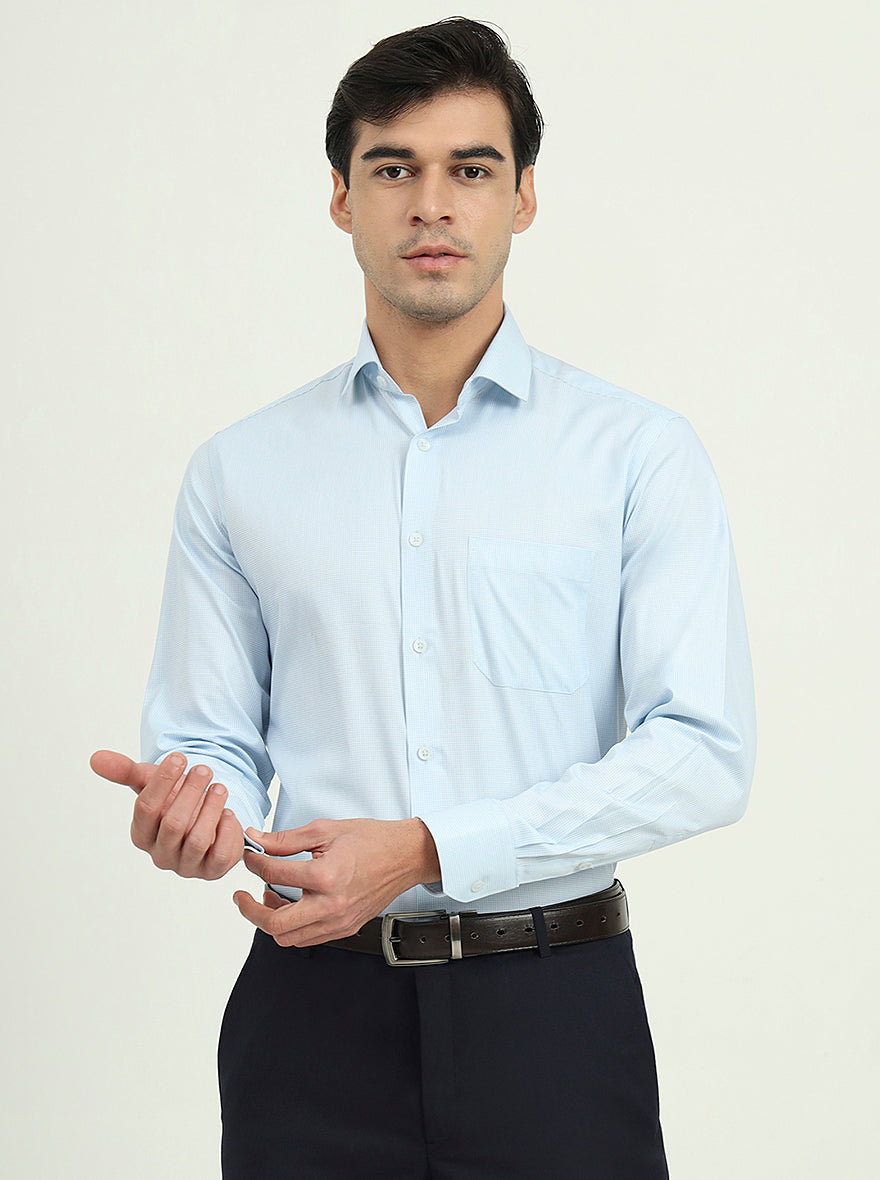 White & Light Blue Solid Slim Fit Formal Shirt | Greenfibre