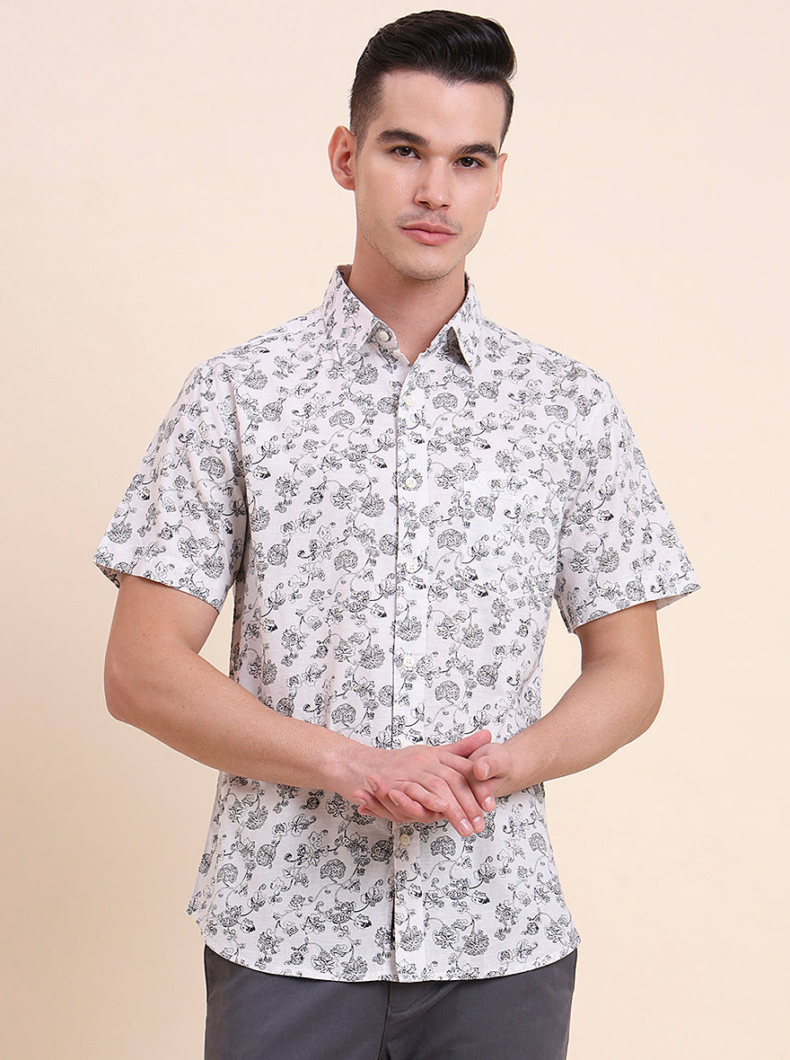 White Printed Slim Fit Casual Shirt | Greenfibre