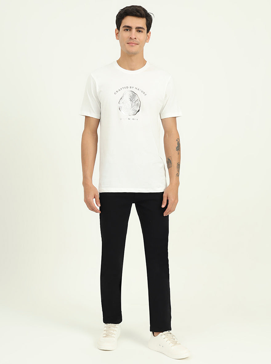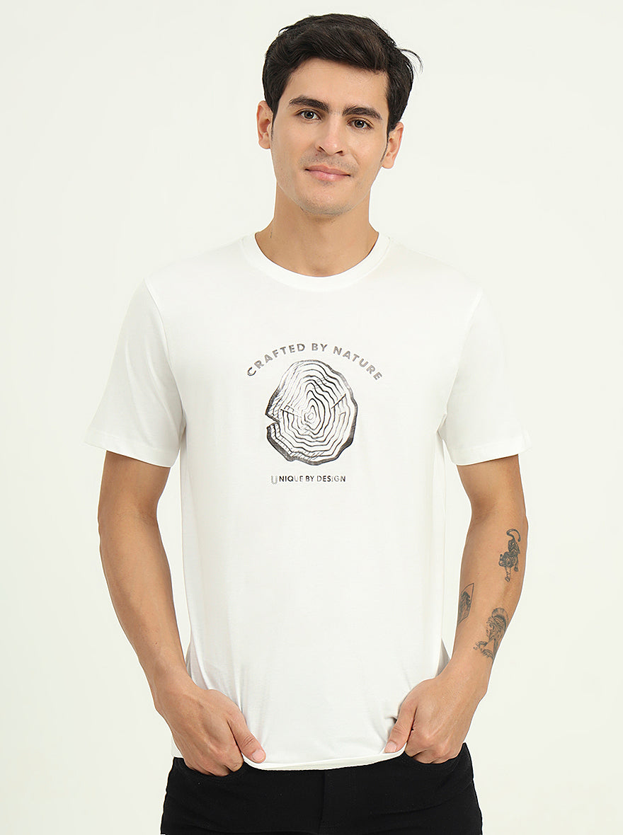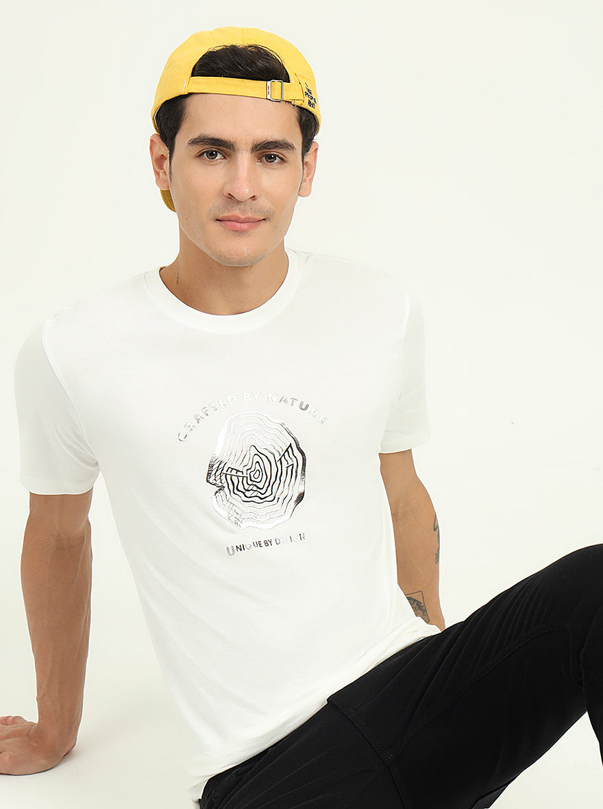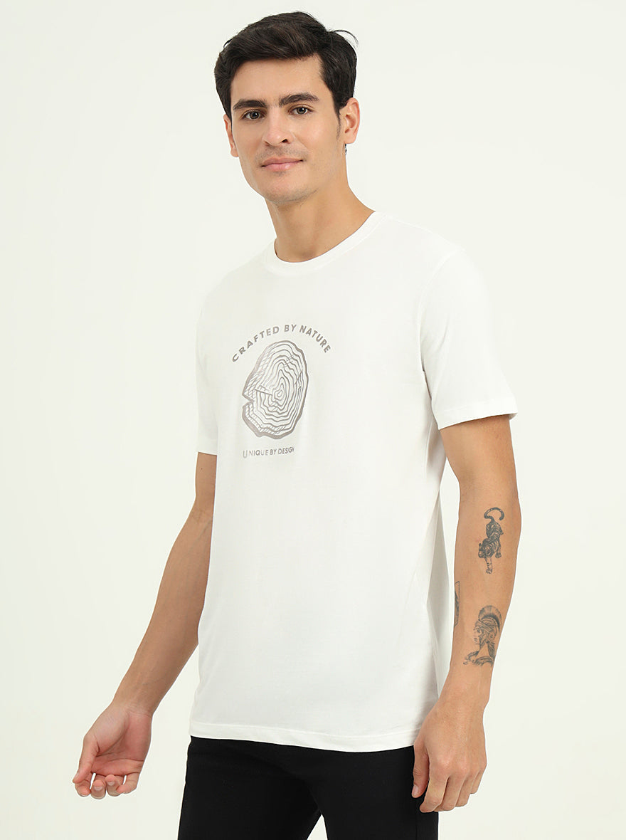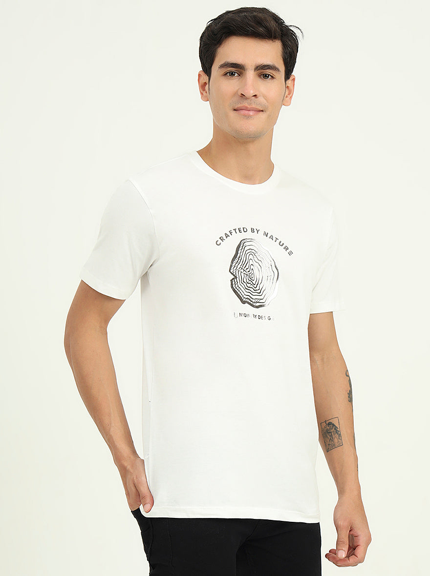 Details: Make a stylish impression with the Greenfibre White Printed Slim Fit T-Shirt. Its modern design and comfortable cotton make it a great choice.