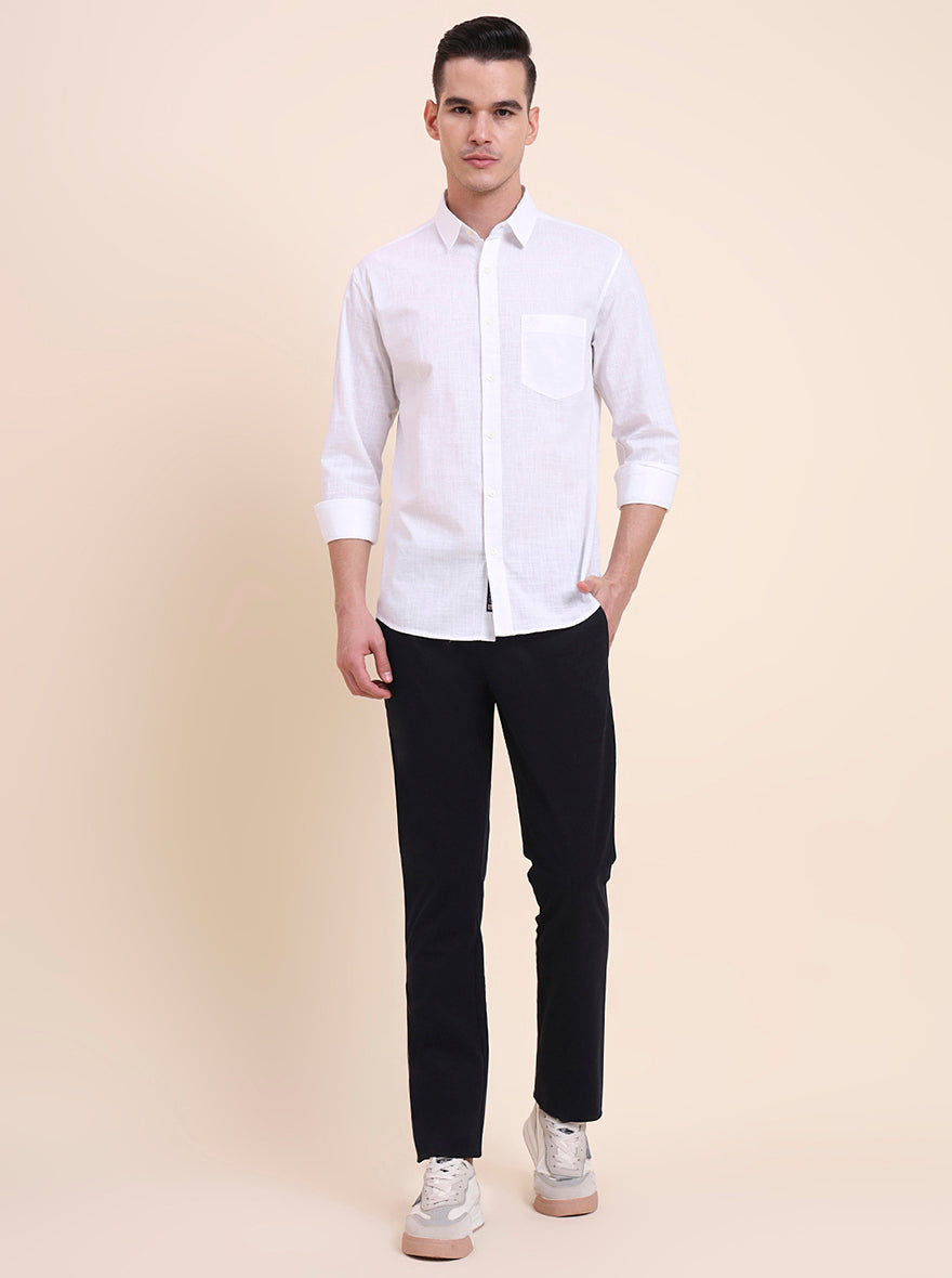 White Solid Slim Fit Casual Shirt | Greenfibre