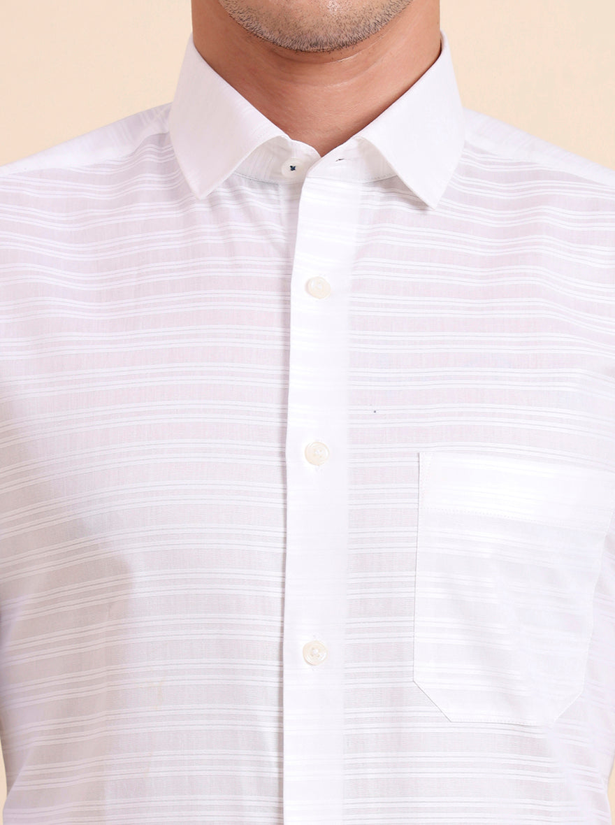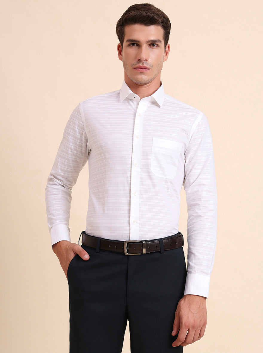 Details: A quintessential piece for any professional wardrobe, the Greenfibre White Formal Shirt combines modern style with unparalleled comfort. Crafted from 100% pure cotton, this slim-fit shirt with full sleeves offers excellent breathability and a crisp, clean look. Its solid white color makes it an incredibly versatile option for all your formal and business casual needs.Wash Care: Machine/Hand wash in cold water separately. Use mild detergent. Do not bleach or wring. Tumble dry low. Dry in shade. Warm iron if required.