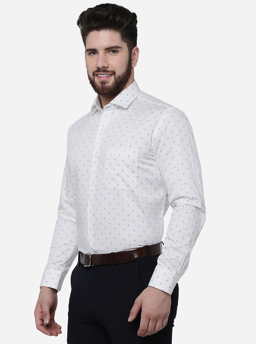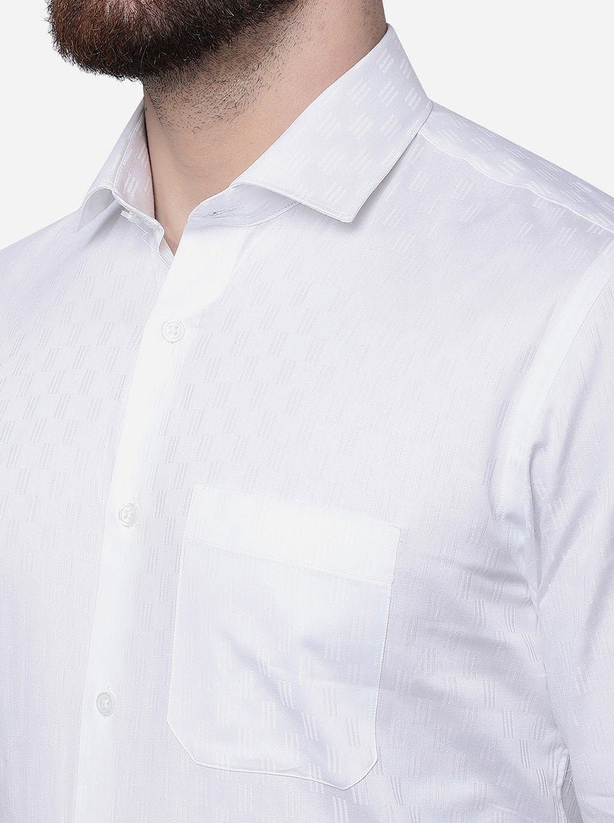 Details: Grab with this White Cotton Blend Formal Shirt from Greenfibre's summer collection. Manufactured with Cotton Blend fabric promising feather-like softness that takes the wearing experience to another level. Offers a slim fit for a sleek look that has been elevated with a Solid pattern. Features with a chest pocket, Full sleeves, and a Slim shirt collar. Match it with the well-fitted trousers of your choice and a pair of Black oxford shoes and you are ready to go.