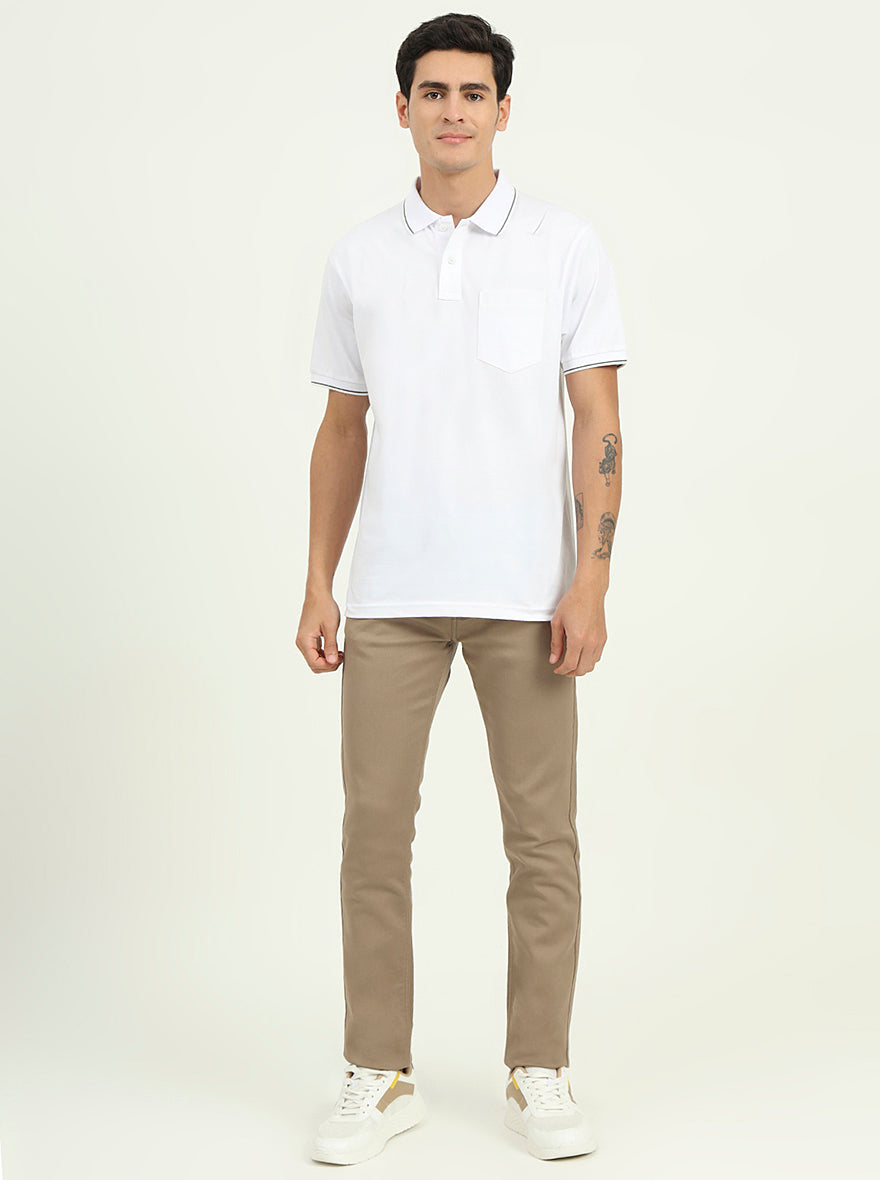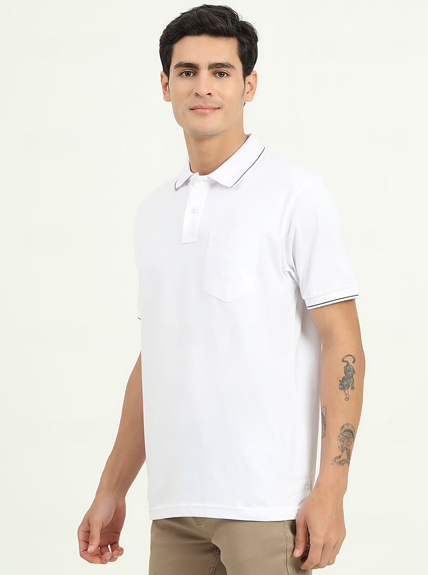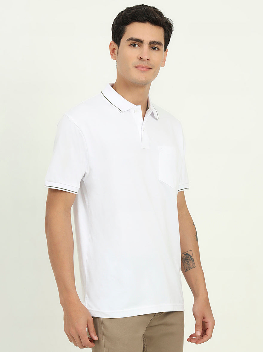 White Solid Slim Fit Polo T-Shirt | Greenfibre