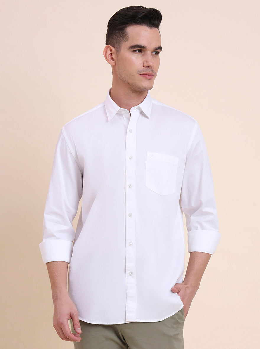 White Solid Smart Fit Semi Casual Shirt | Greenfibre