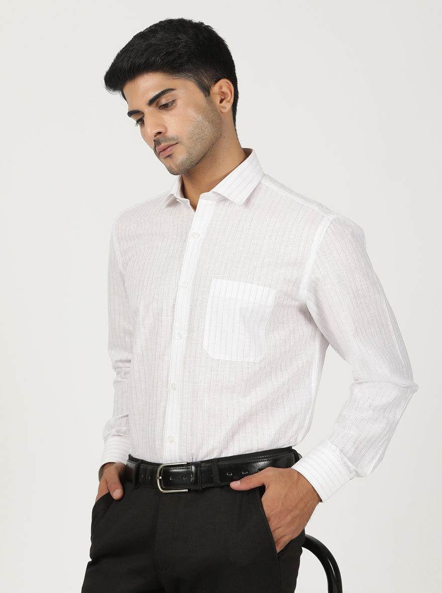 White Striped Regular Fit Formal Shirt | Greenfibre