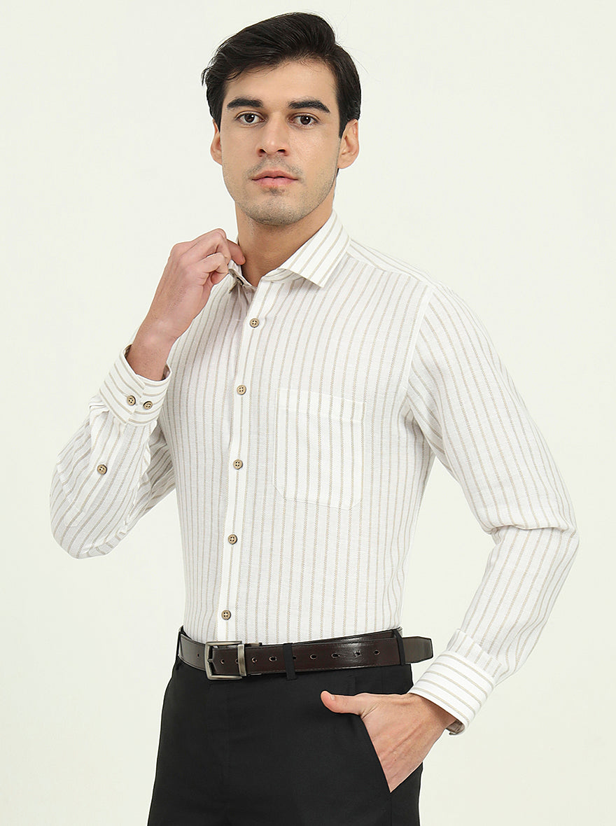 White Striped Slim Fit Party Wear Shirt | Greenfibre