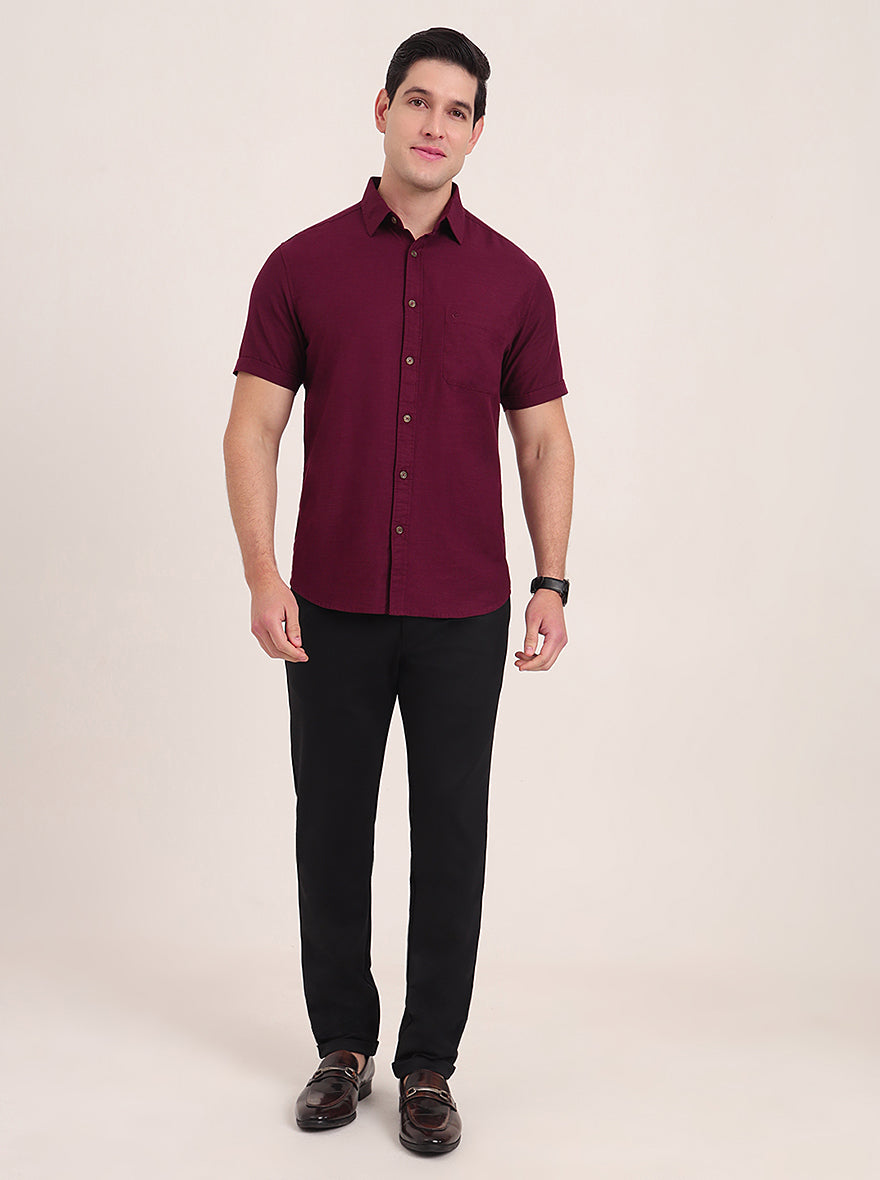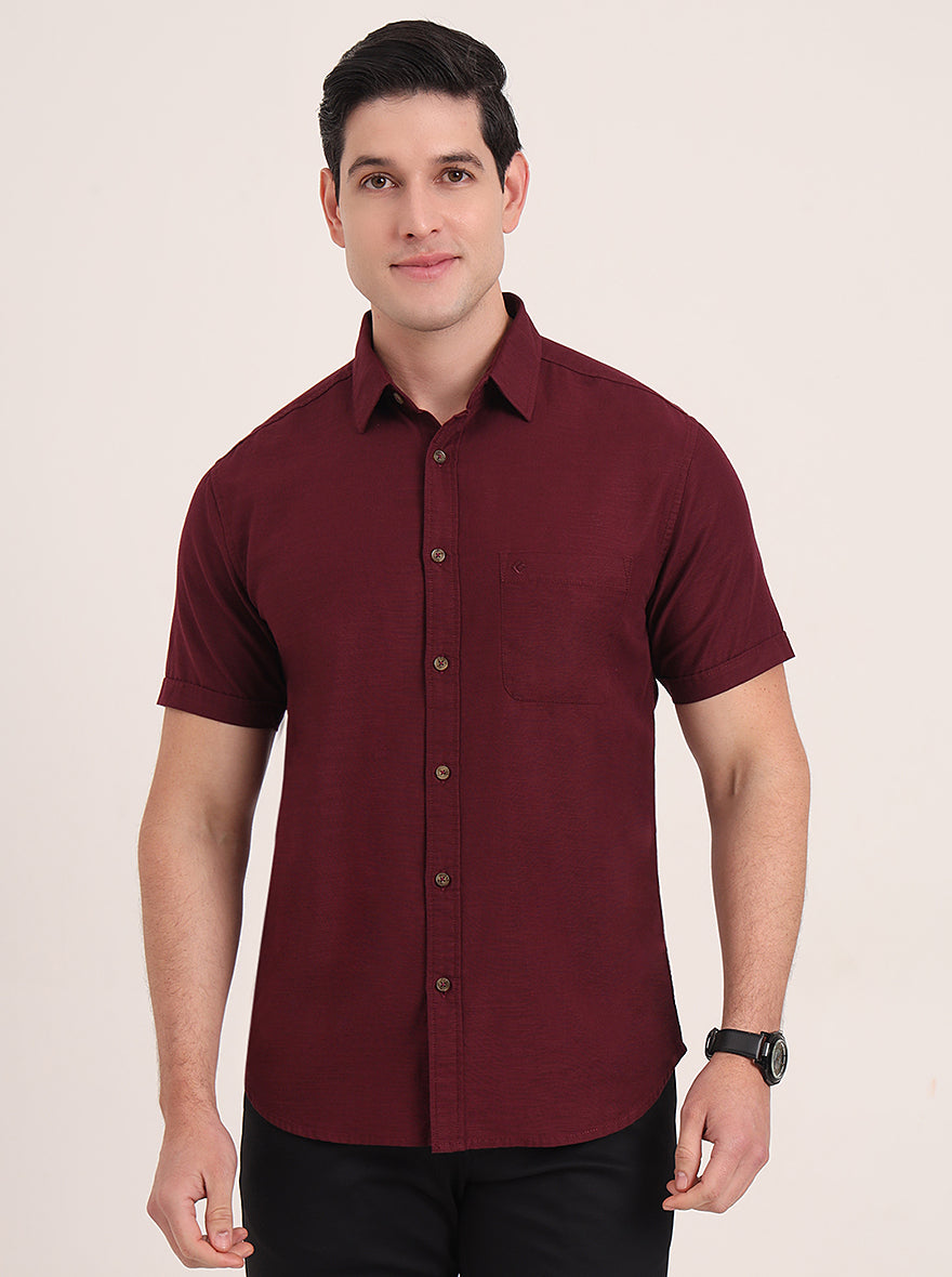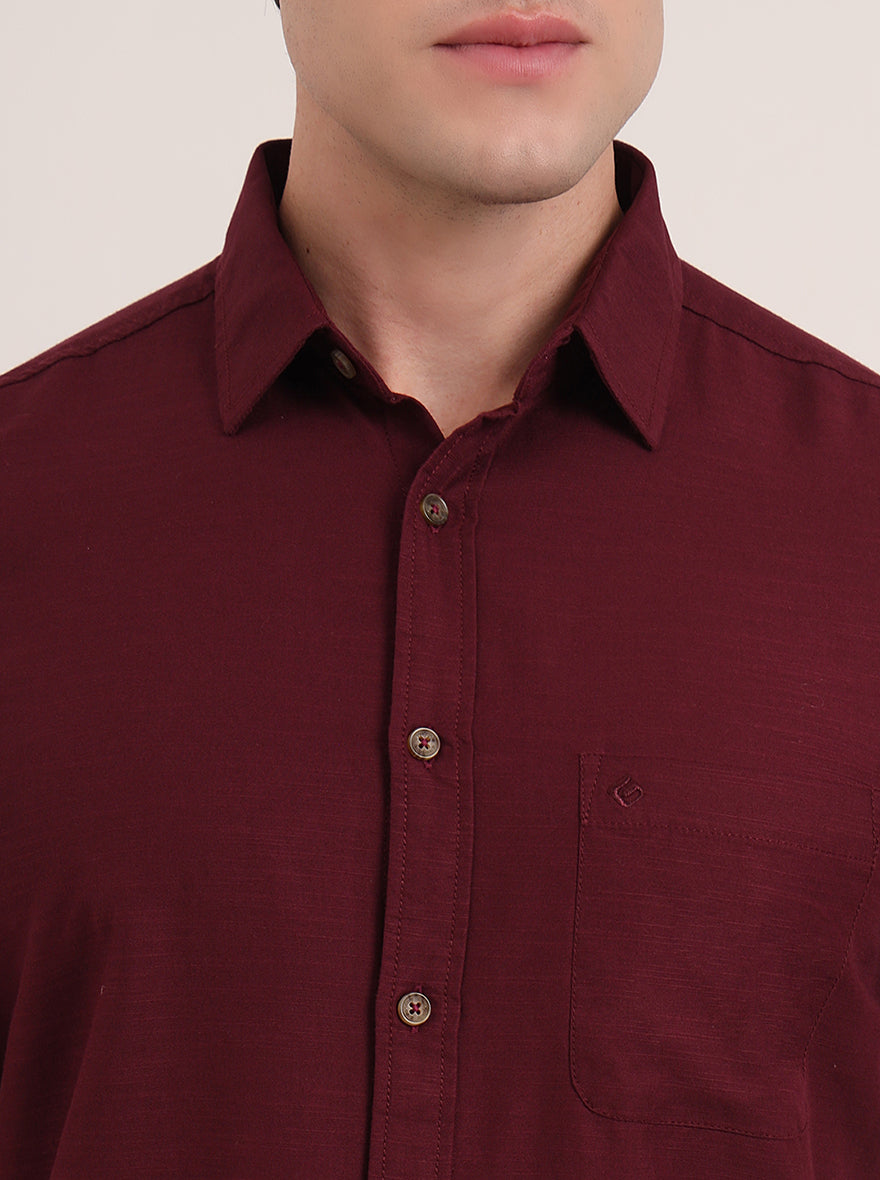 Wine Solid Slim Fit Casual Shirt | Greenfibre