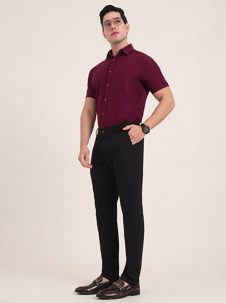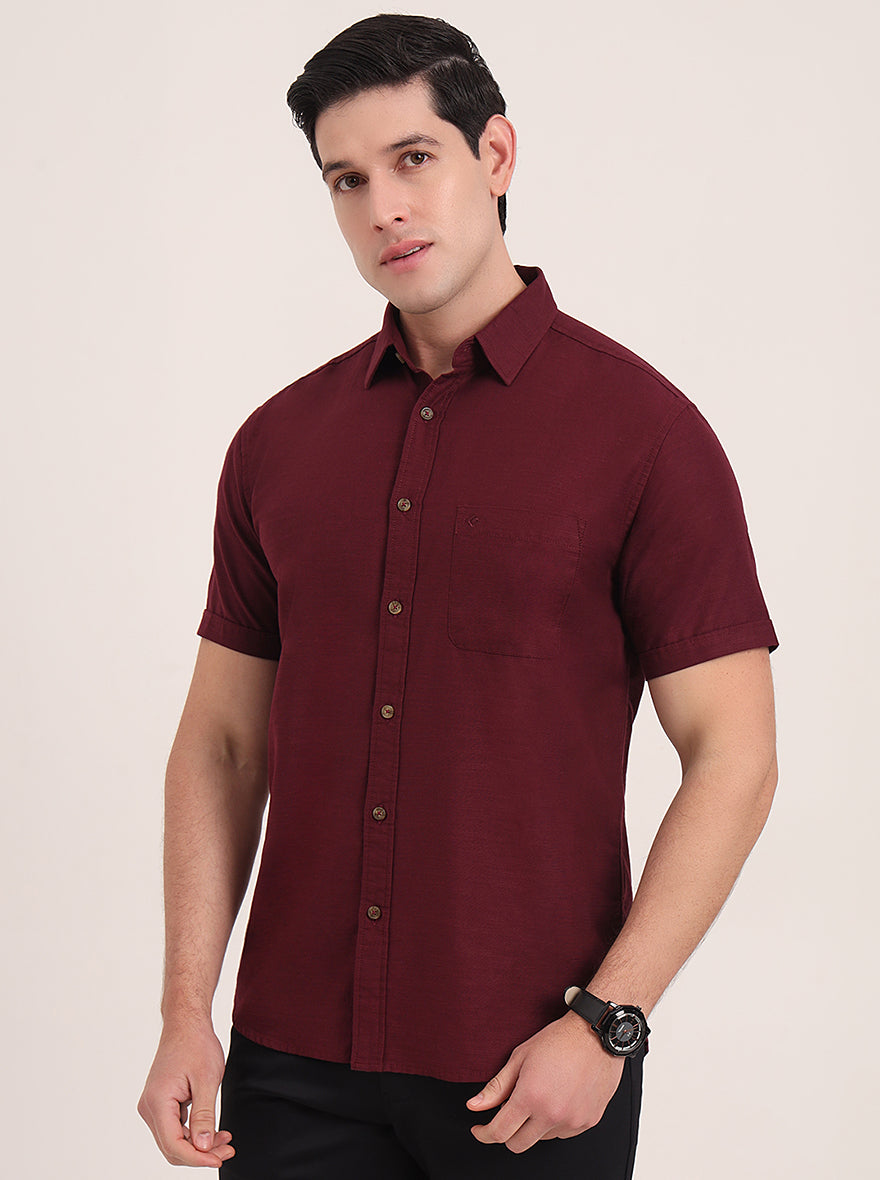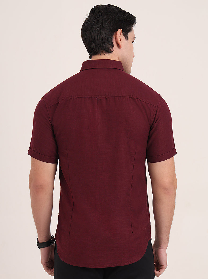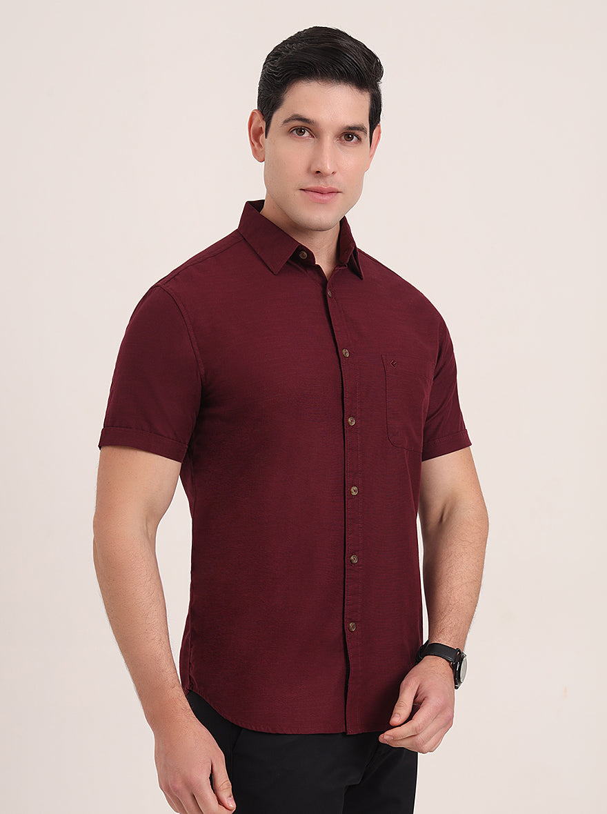 Wine Solid Slim Fit Casual Shirt | Greenfibre