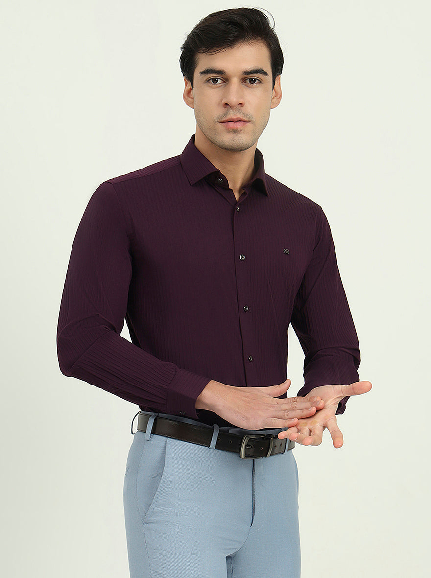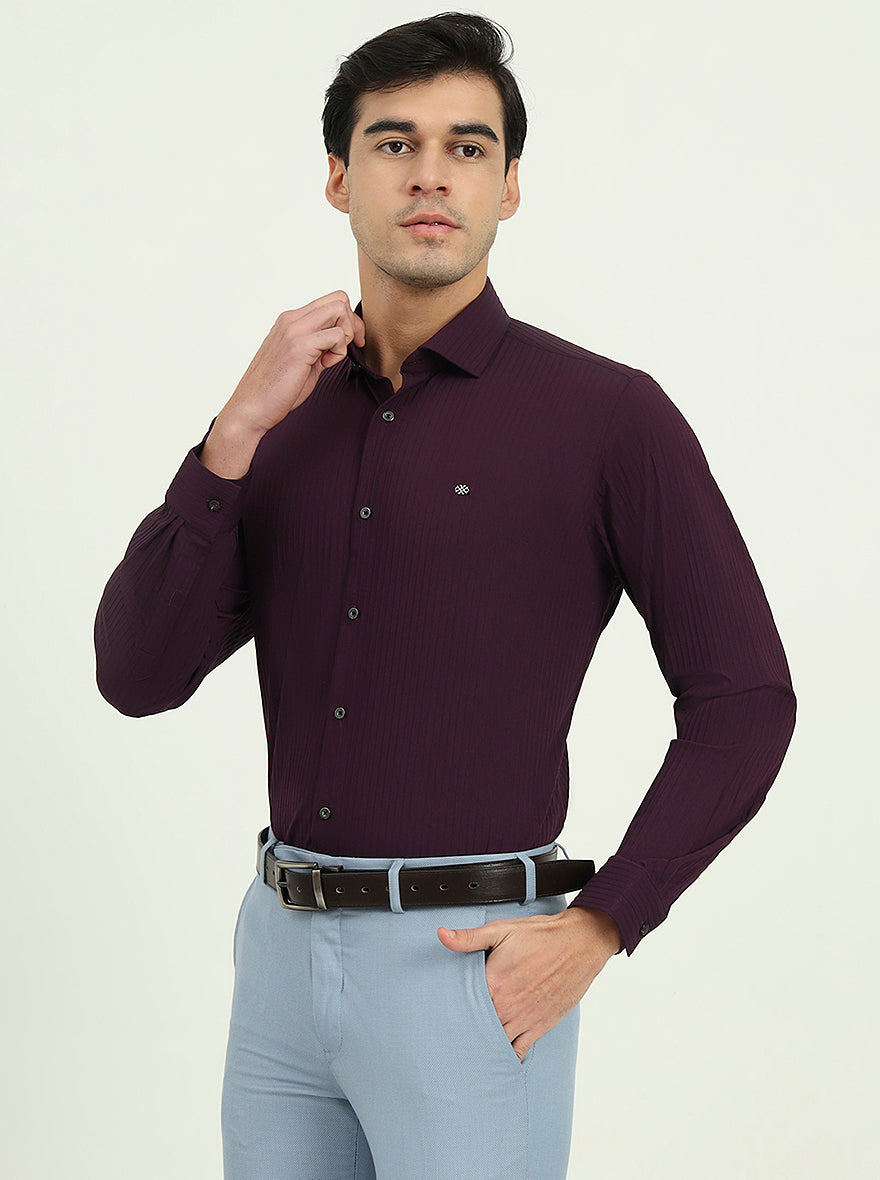 Wine Solid Slim Fit Party Wear Shirt | Greenfibre