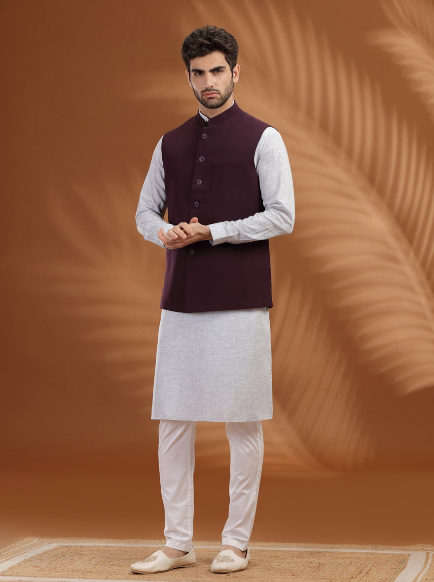 Details: Step into sophistication with Greenfibre's Wine Blended Solid Waist Coat. This elegant addition to your wardrobe is designed for the modern man who values style and tradition. Crafted from a premium blended fabric, this waist coat guarantees comfort and durability, perfect for long hours at any event. The regular fit provides a relaxed yet stylish silhouette, ensuring you look your best without compromising on comfort. Its rich wine color exudes elegance, making it a versatile piece that pairs well with a variety of formal attires. The regular collar enhances its classic appeal, making it suitable for weddings, receptions, or any formal gatherings. Elevate your ensemble with this finely crafted waist coat from Greenfibre, and make a lasting impression wherever you go.