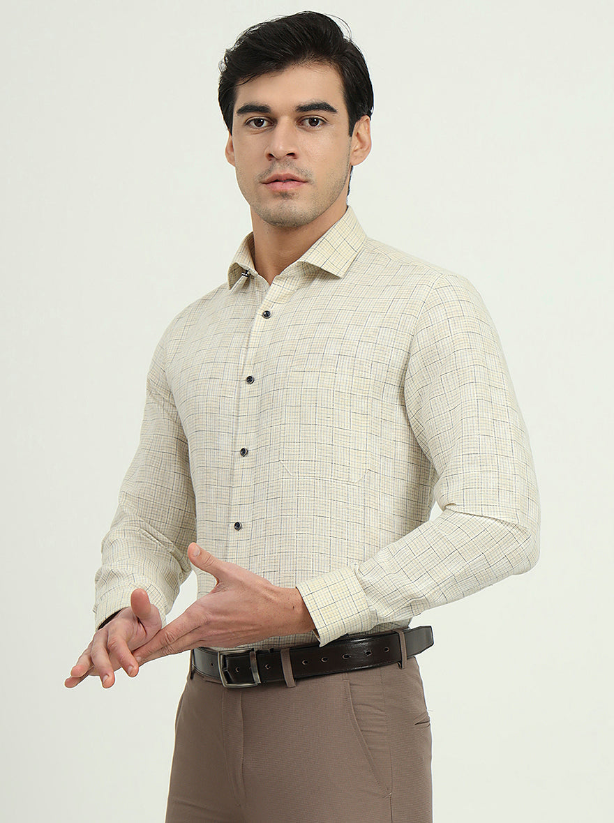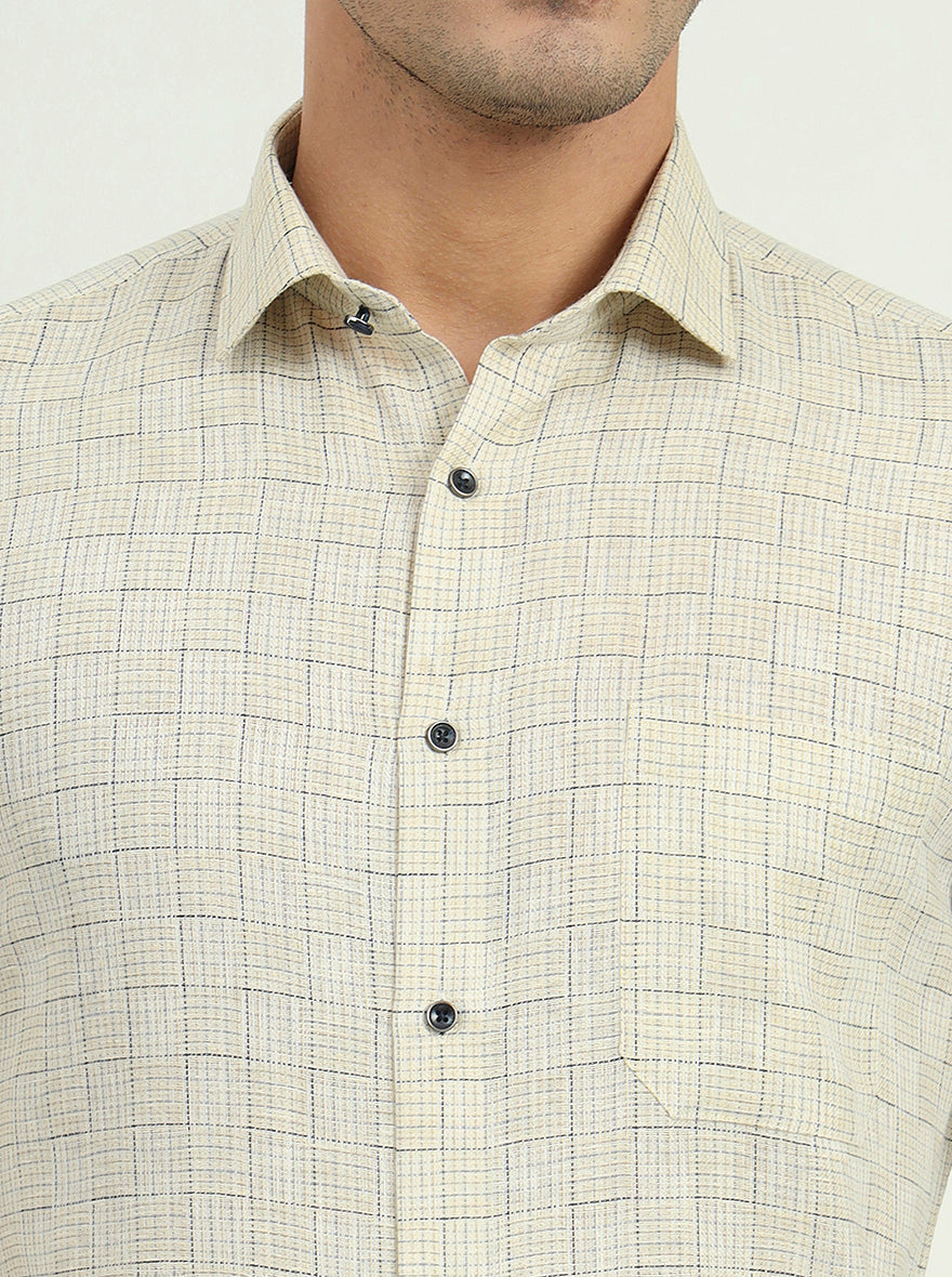 Yellow & Blue Checked Slim Fit Party Wear Shirt | Greenfibre
