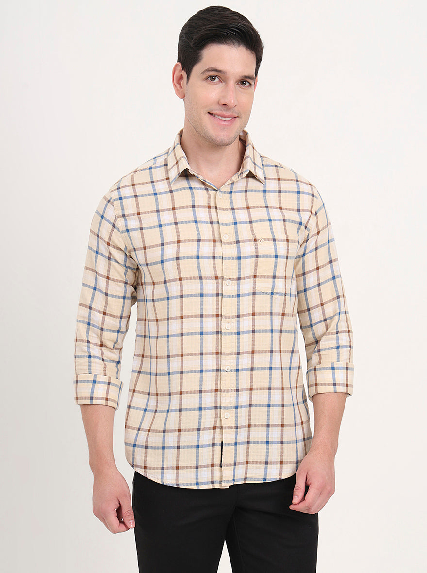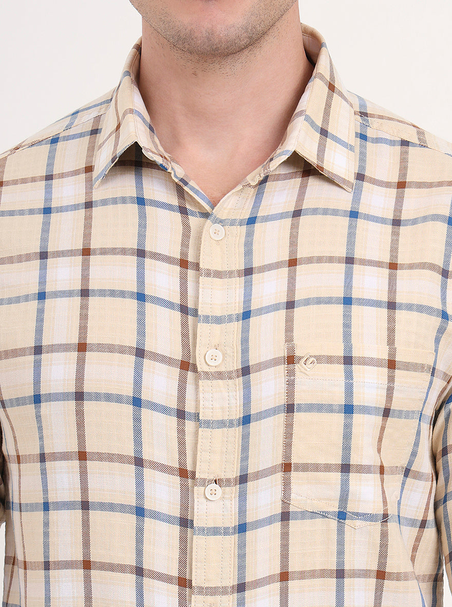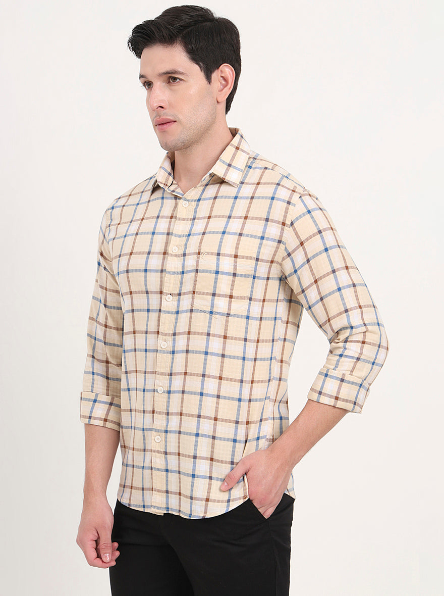Yellow Checked Slim Fit Casual Shirt | Greenfibre