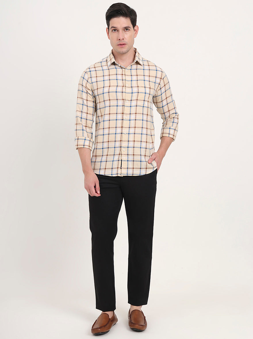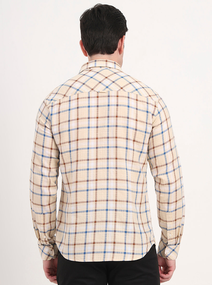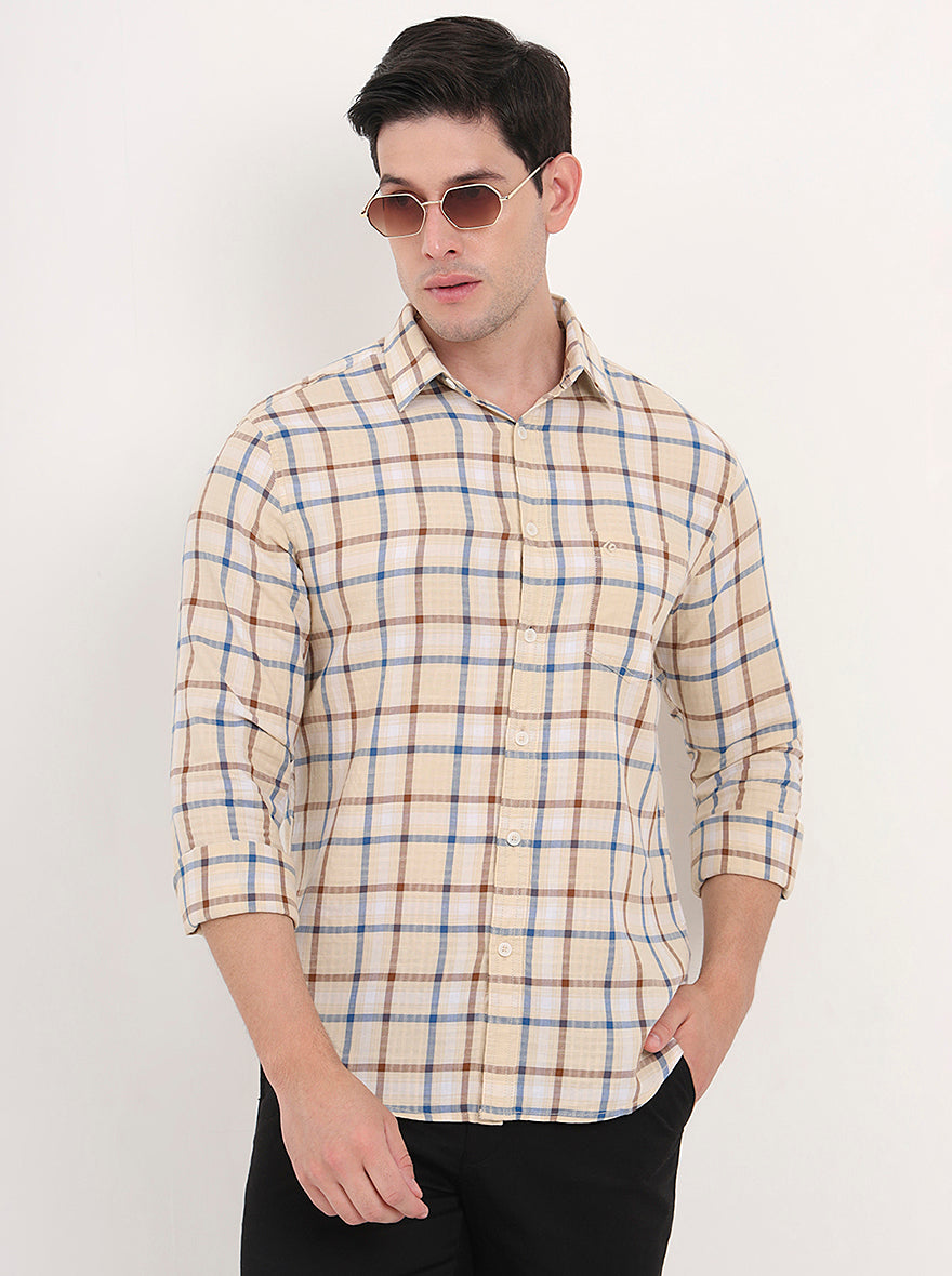 Yellow Checked Slim Fit Casual Shirt | Greenfibre