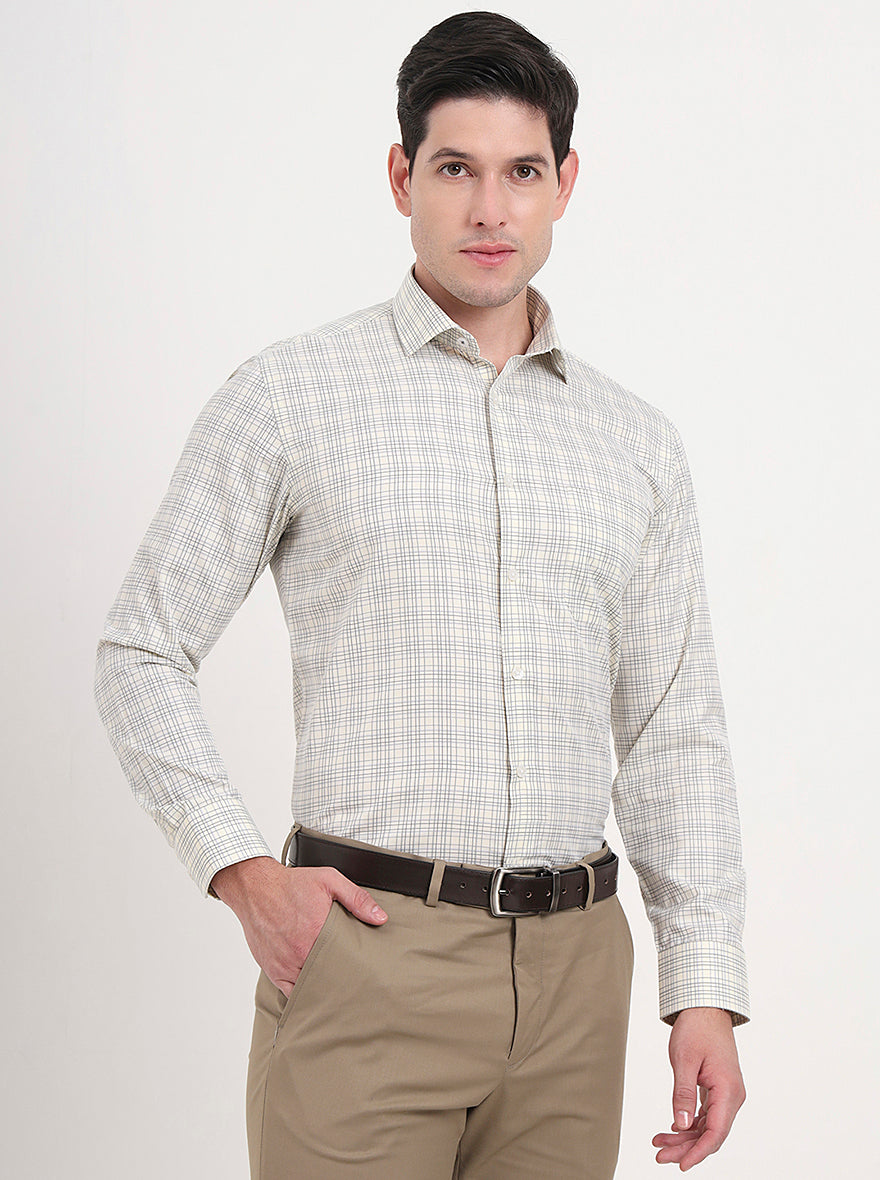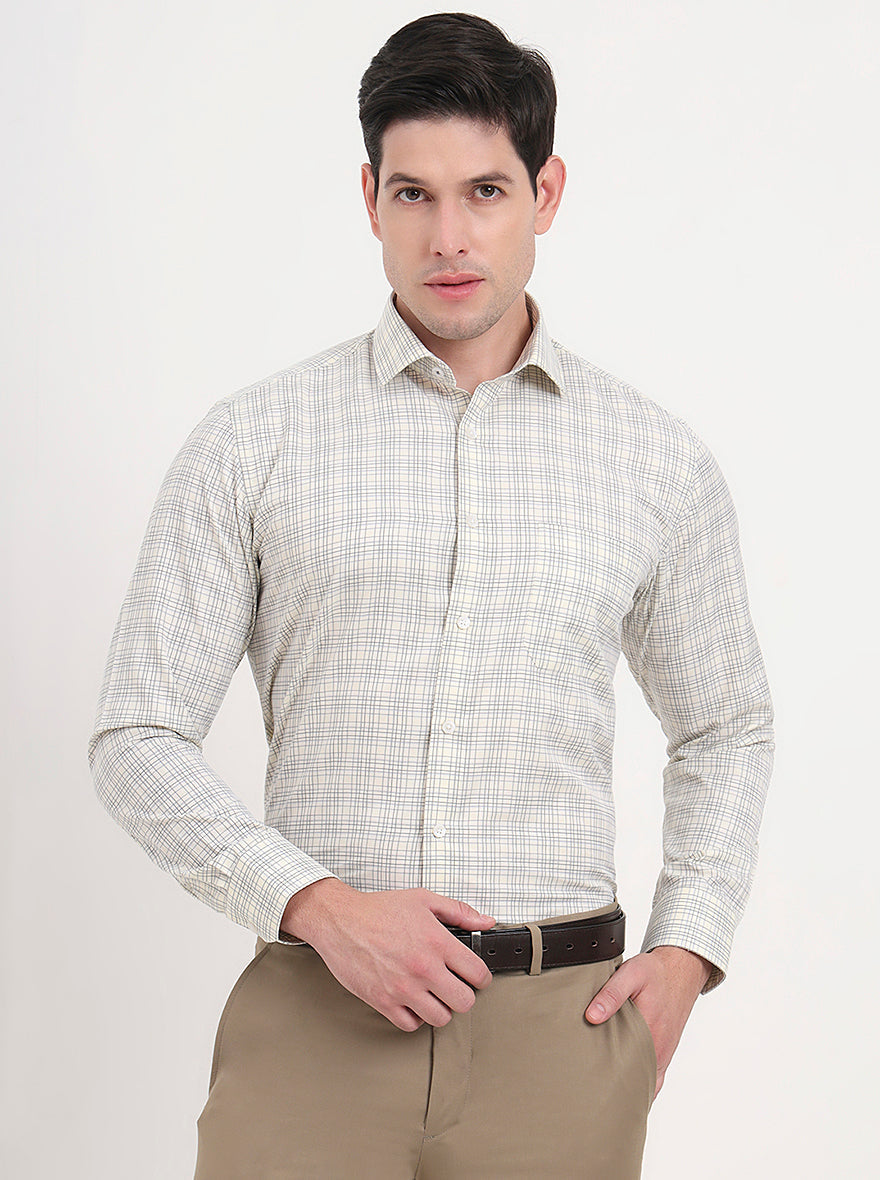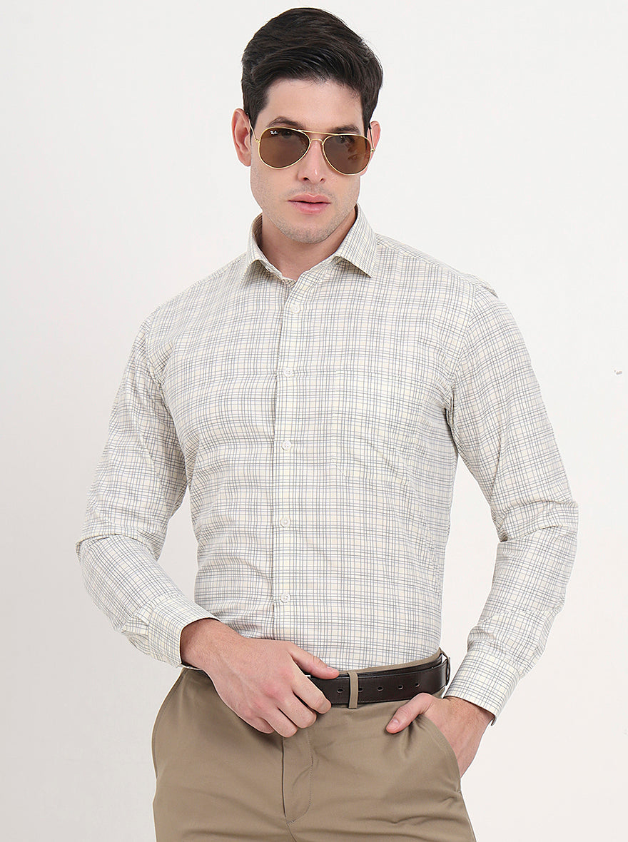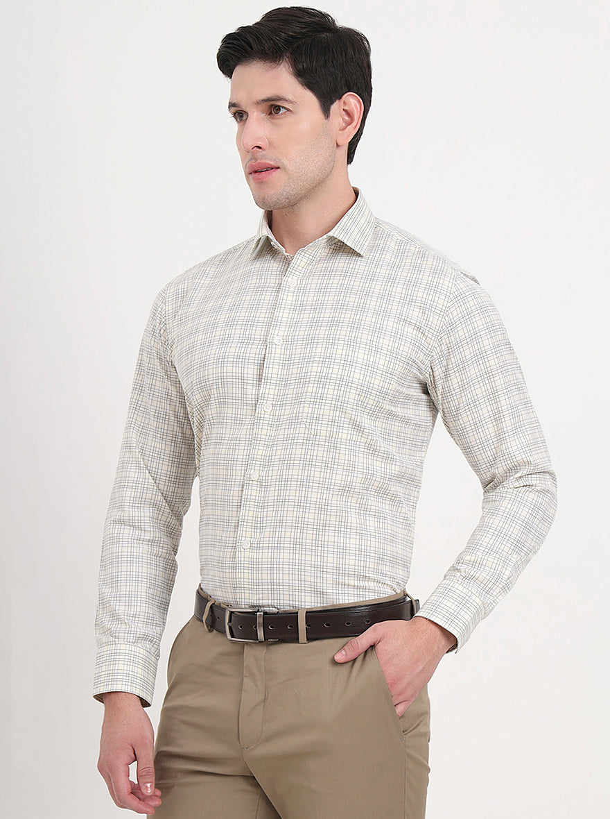 Yellow Checked Slim Fit Formal Shirt | Greenfibre