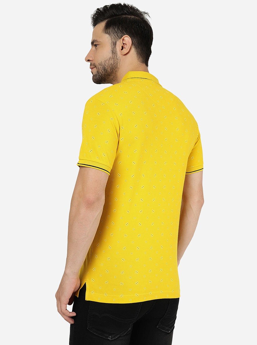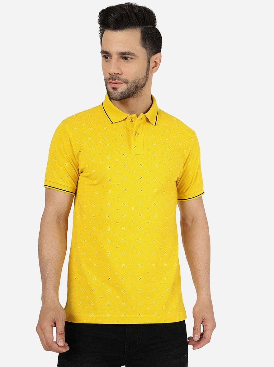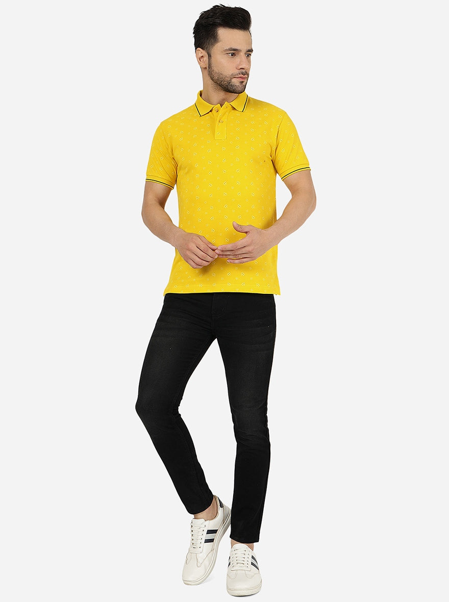 Yellow Printed Slim Fit Polo T-Shirt | Greenfibre