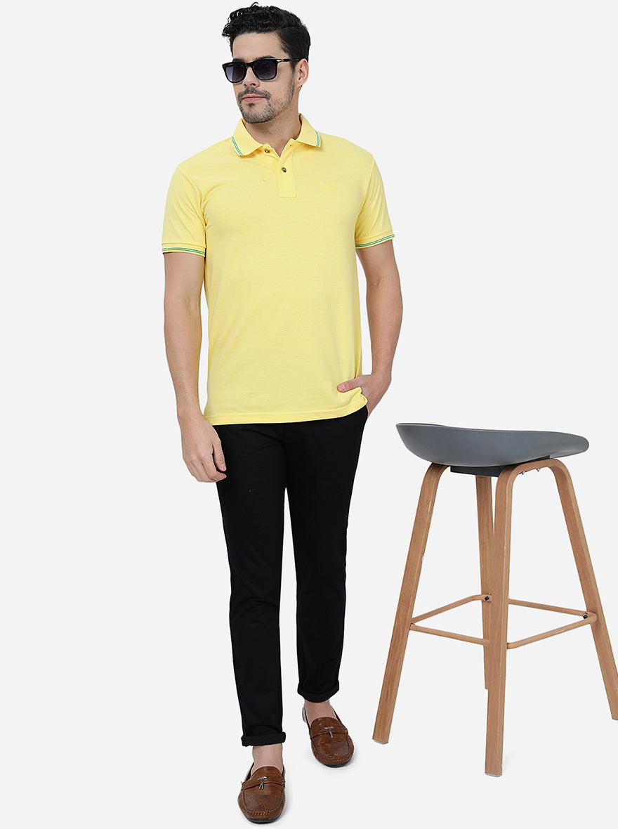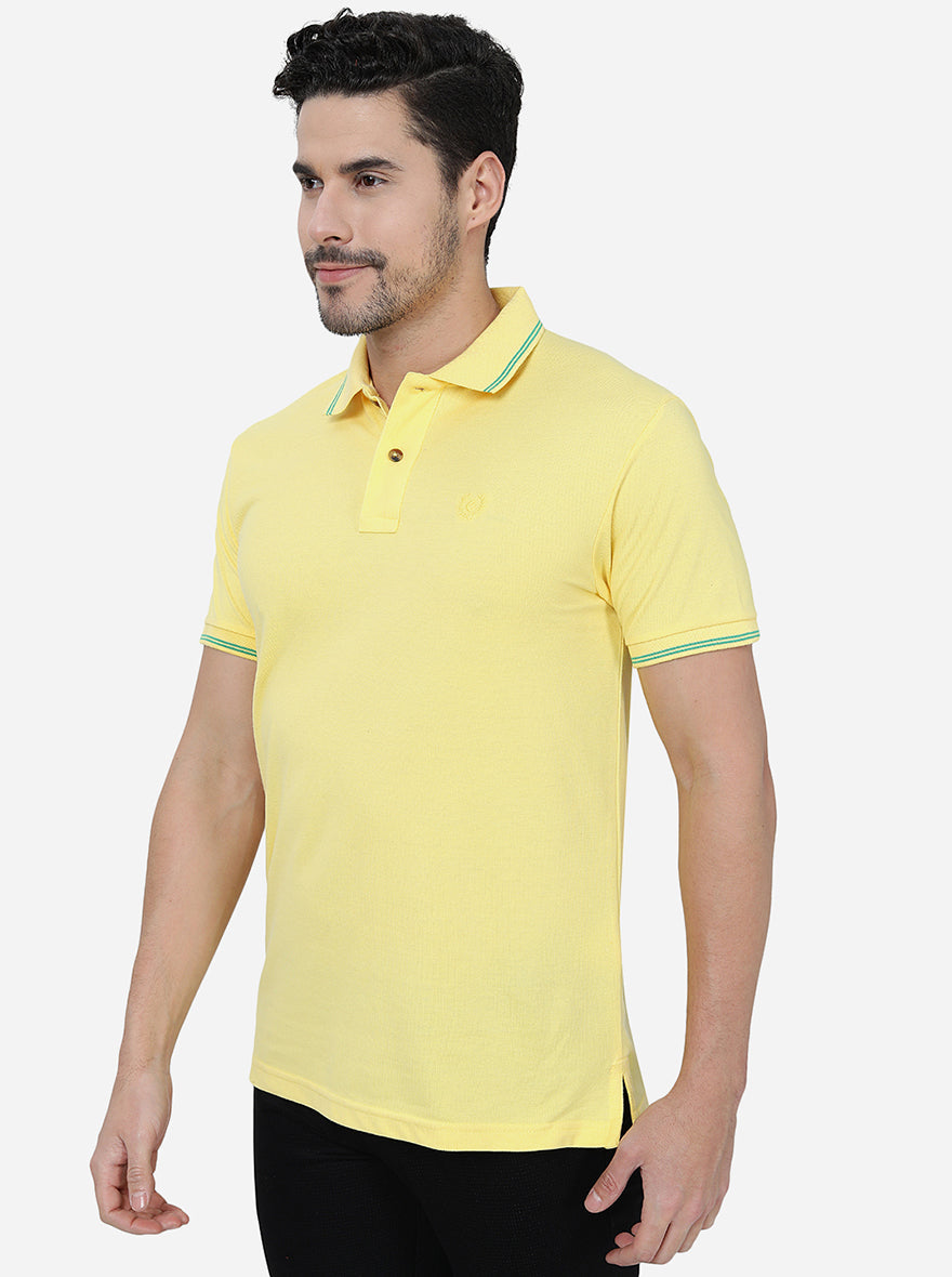 Yellow Solid Slim Fit Polo T-Shirt | Greenfibre