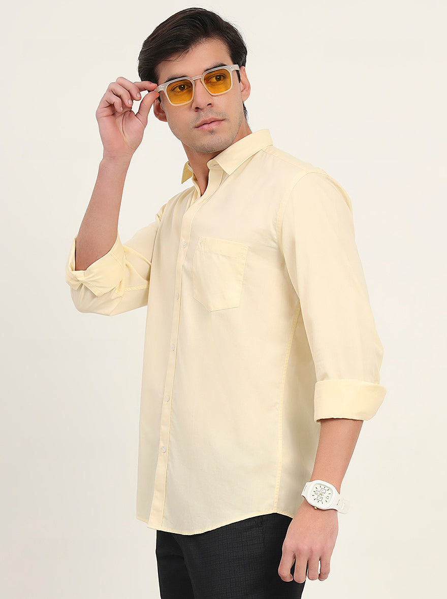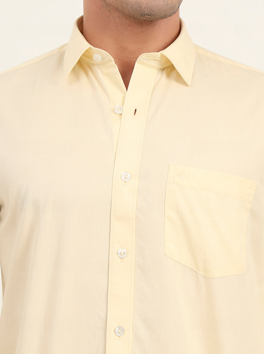 Yellow Solid Slim Fit Semi Casual Shirt | Greenfibre